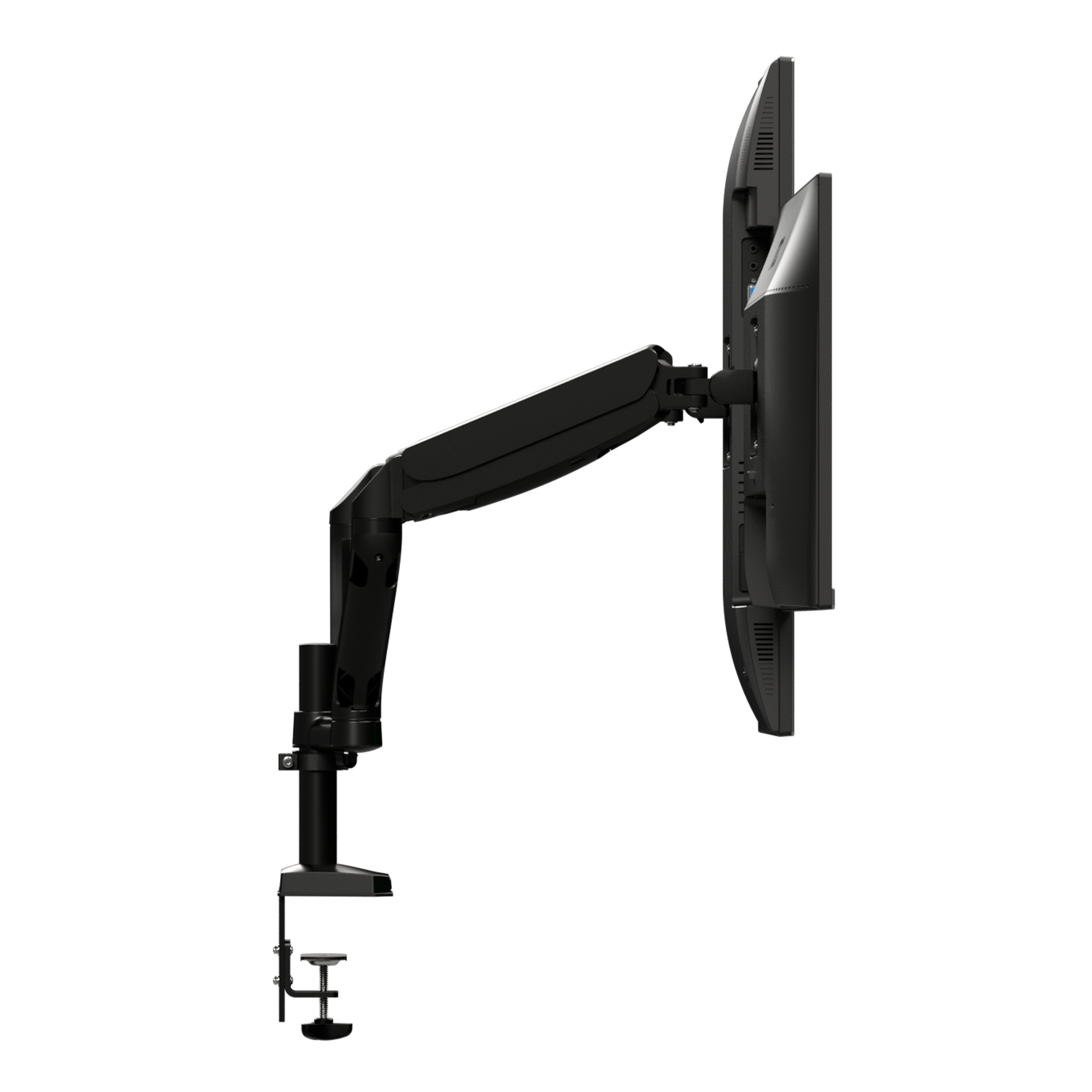 Dual monitor arm for up to 32“ displays The gas-spring loaded, sleek AD100 dual monitor arm can be clamped to desks, holds two displays up to 32“ size. 360° pivot range, wide tilt range, 320 mm height range delivers huge flexibility. |