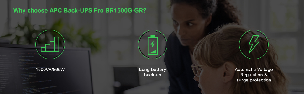 APC Back-UPS Pro uninterruptible power supply (UPS) Line-Interactive 1.5 kVA 865 W 6 AC outlet(s)Back-UPS Pro 1500 - 1500 VA, 865 W, 230V, 160 - 286V