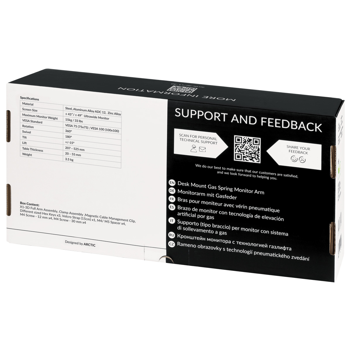 ARCTIC X1-3D - Desk Mount Gas Spring Monitor ArmDesk Mount Gas Spring Monitor Arm, max. 43", max. 10 kg, max. 100 x 100 VESA, 3500 g