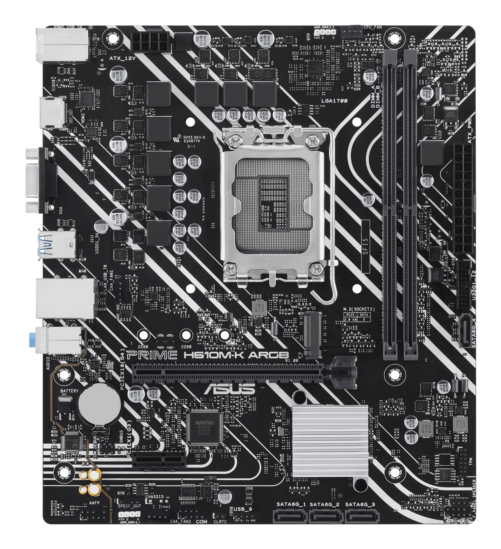 ASUS PRIME H610M-K ARGB Intel H610 LGA 1700 micro ATXPRIME H610M-K ARGB Mainboard Sockel Intel LGA1700 (H610, micro-ATX, DDR5, PCIe 4.0, M.2, SATA 6Gbit/s, Aura Sync)