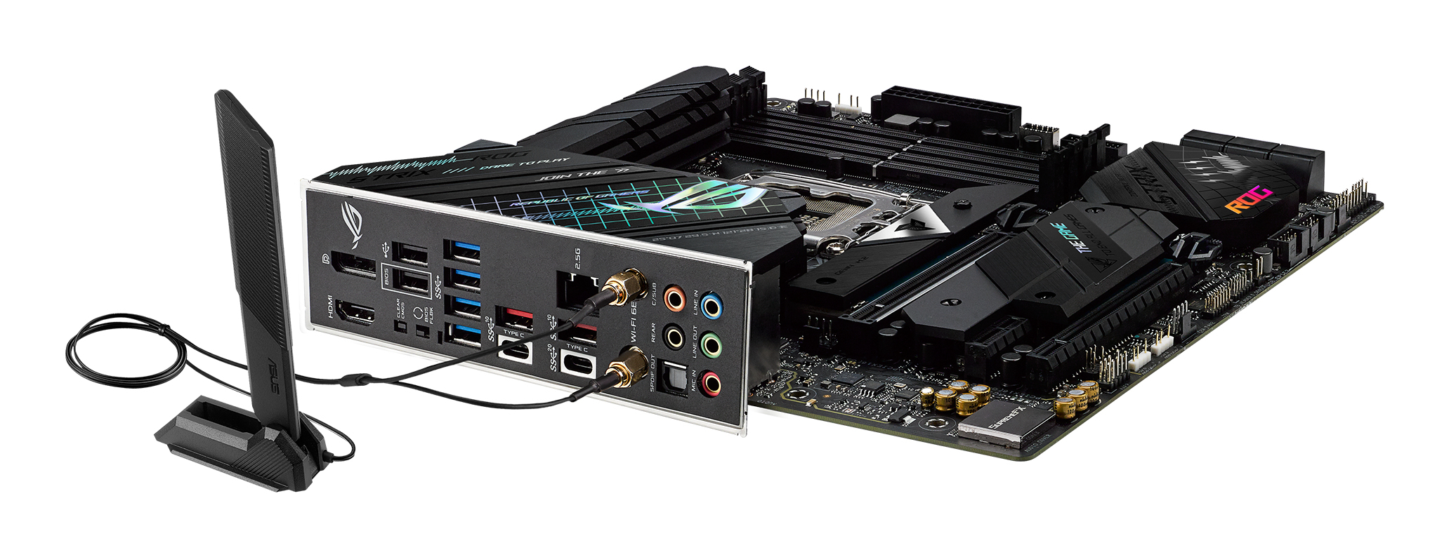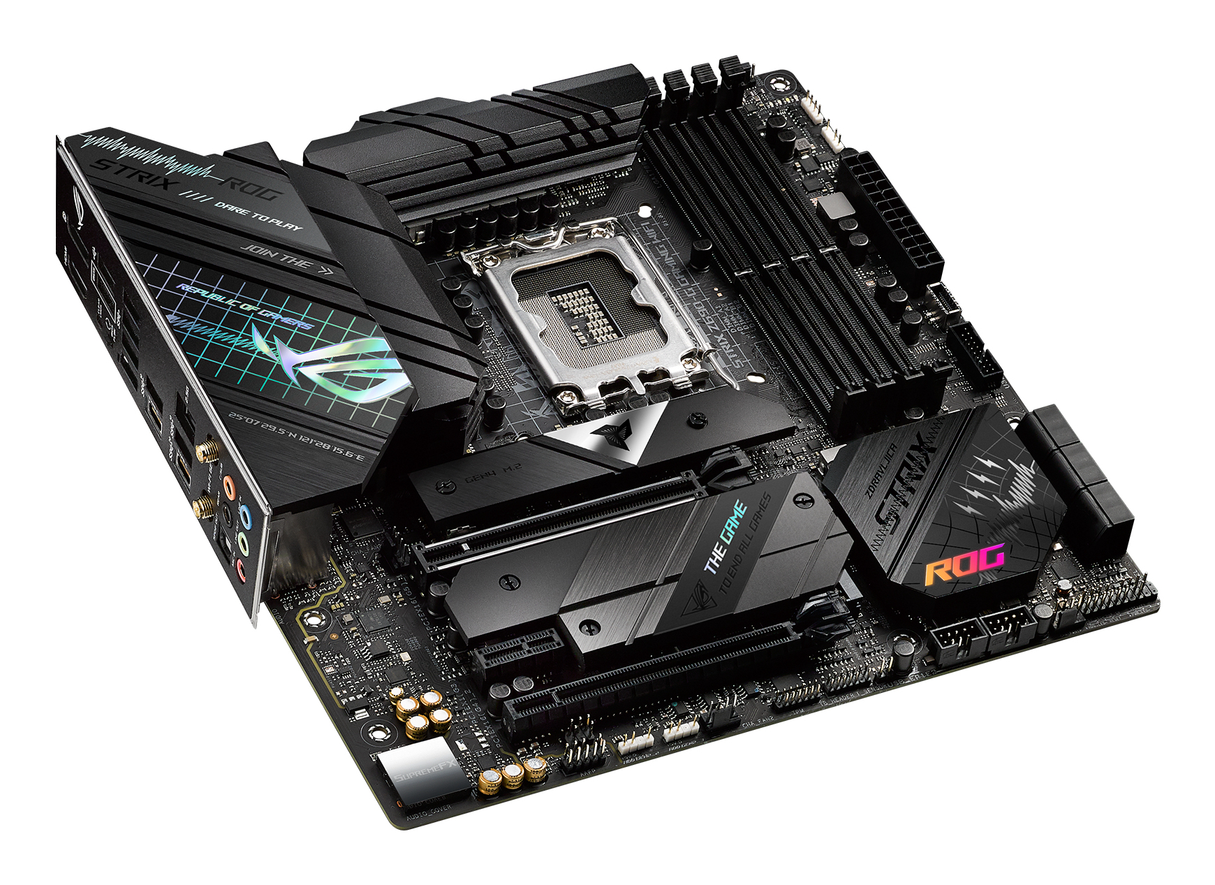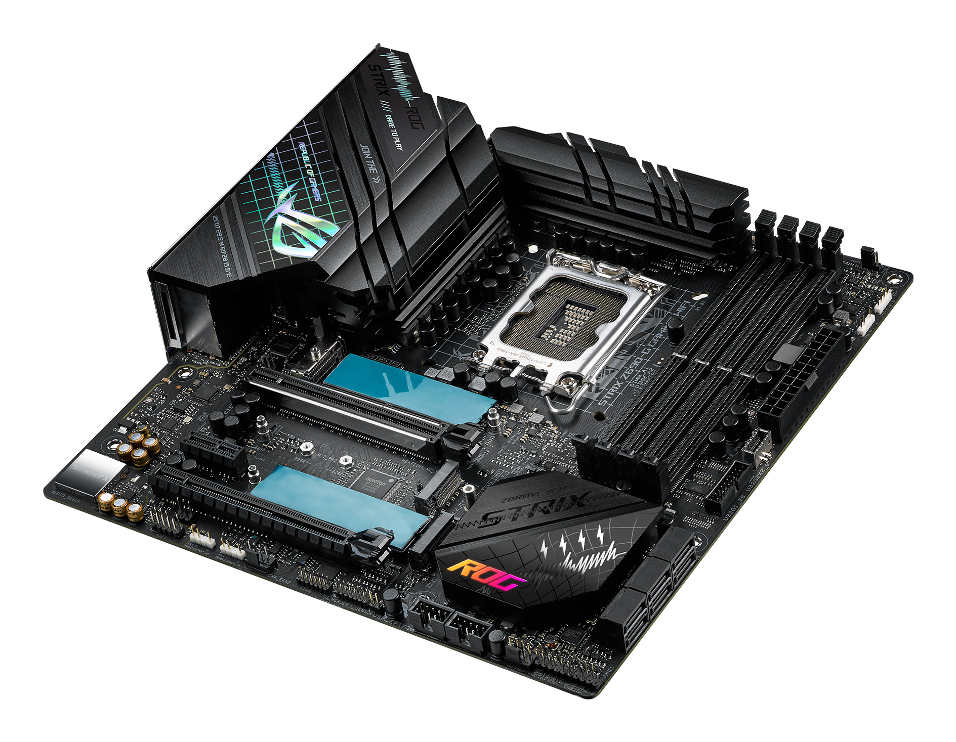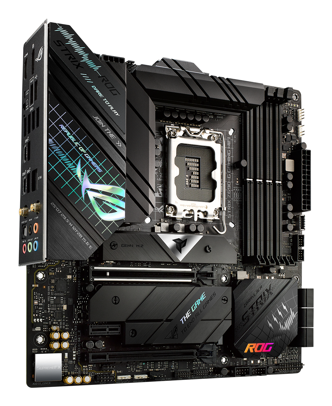 ASUS ROG STRIX Z690-G GAMING WIFI Intel Z690 LGA 1700 micro ATXIntel® Z690 LGA 1700 ATX motherboard with PCIe® 5.0, 14+1 DrMos, DDR5 memory support, Two-Way AI Noise Cancelation, AI Overclocking, AI Cooling, AI Networking, WiFi 6E (802.11ax), Intel® 2.5 Gb Ethernet, three M.2 slots with heatsinks, PCIe® 4.0 NVMe® SSD support, M.2 backplates, USB 3.2 Gen 2x2 Type-C®, SATA and AURA Sync RGB lighting