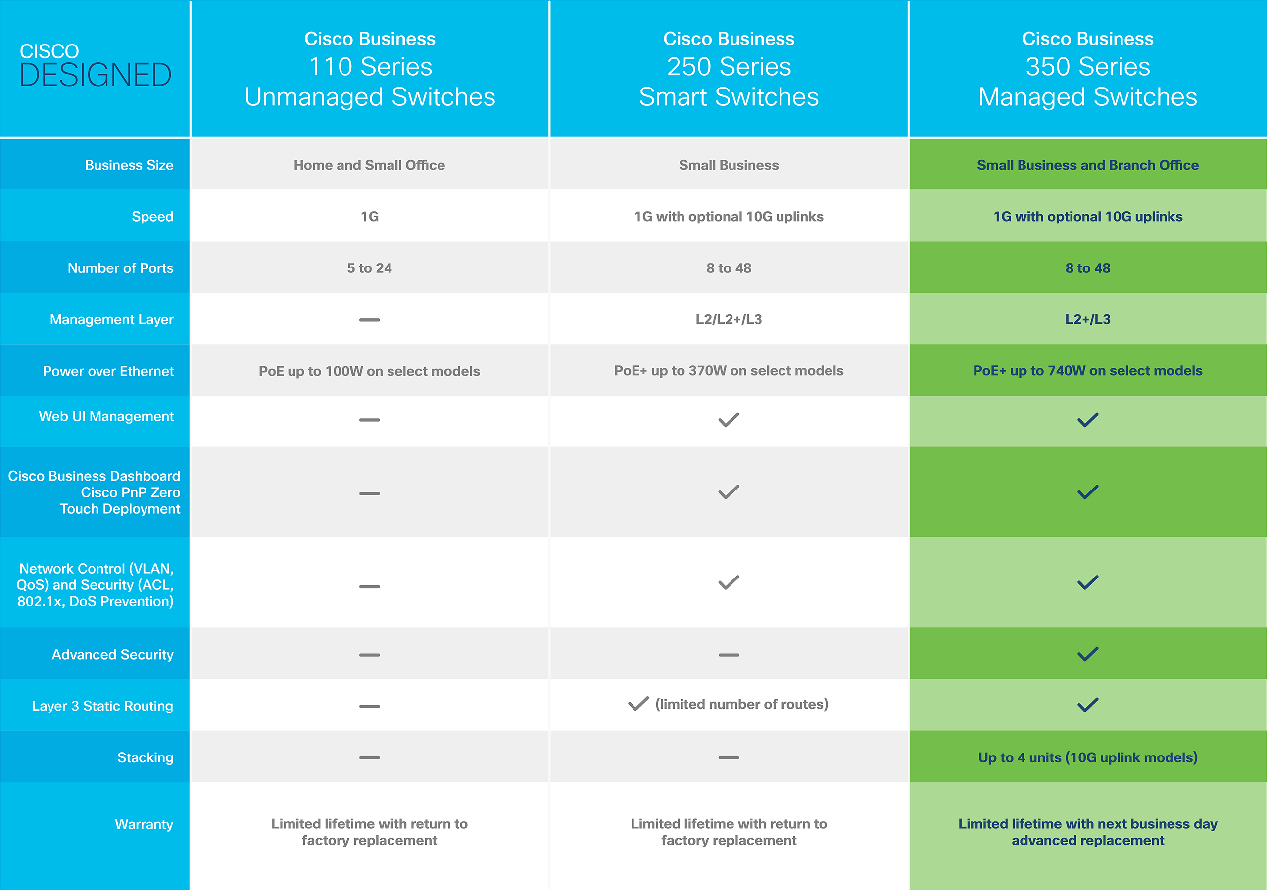 | The Cisco Business CBS350-8P-E-2G switch is part of the fully managed switch line that delivers reliable and secure connectivity for small business networks. These switches accelerate your digital transformation by delivering full Layer 2/3 capabilities, intuitive web dashboard, advanced networking features, and PoE+ support. |