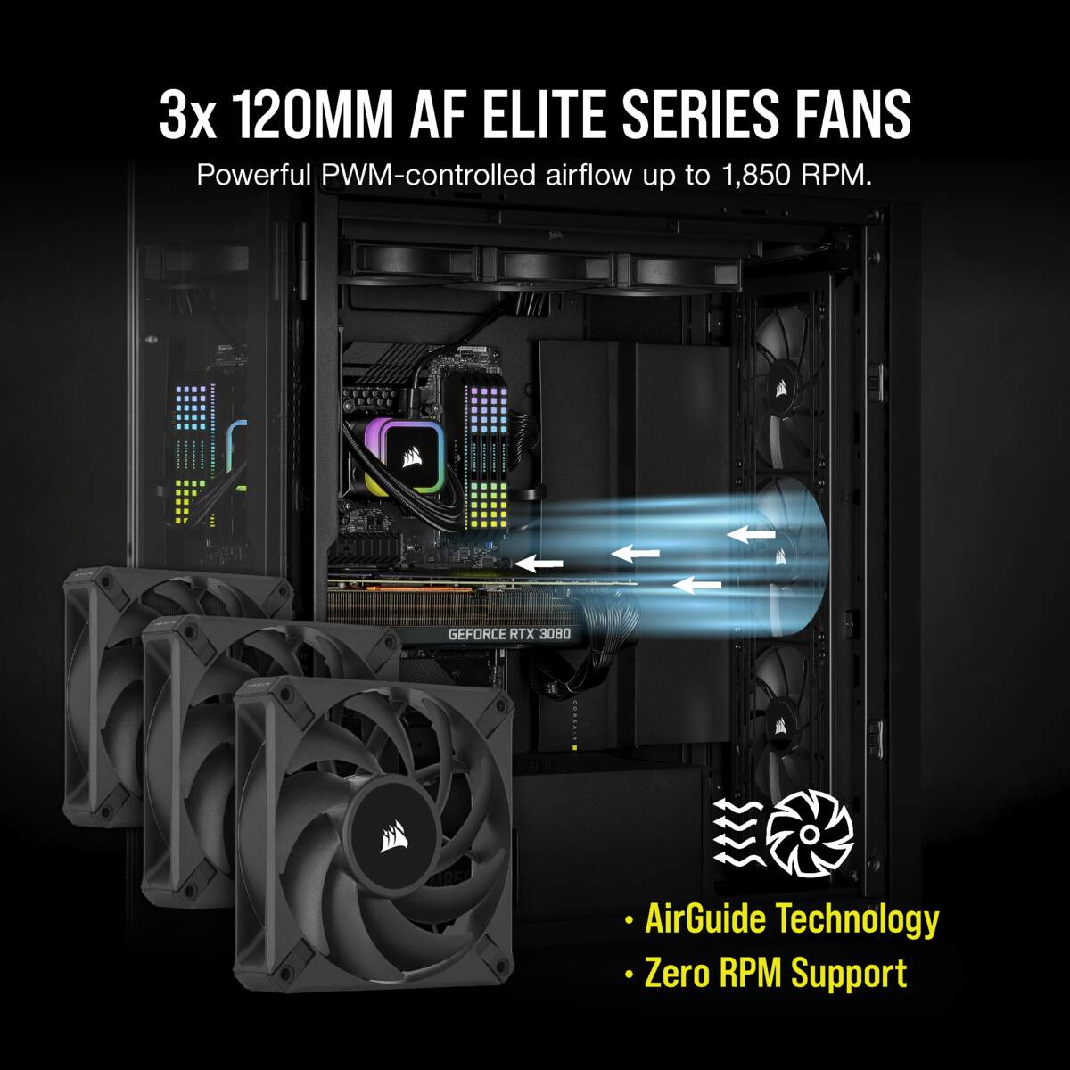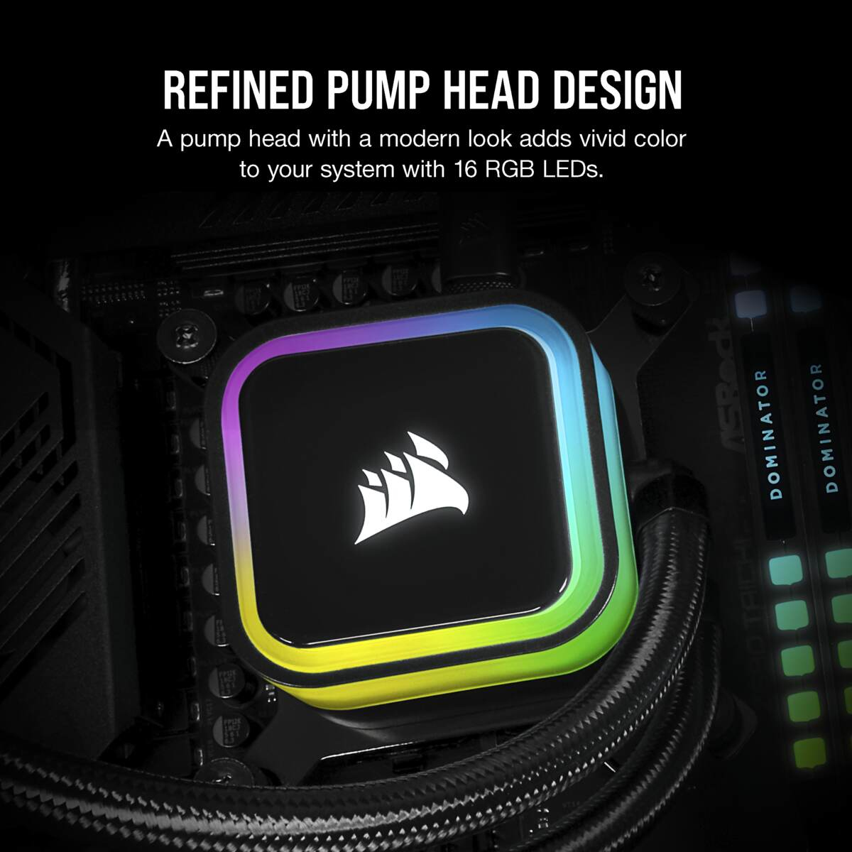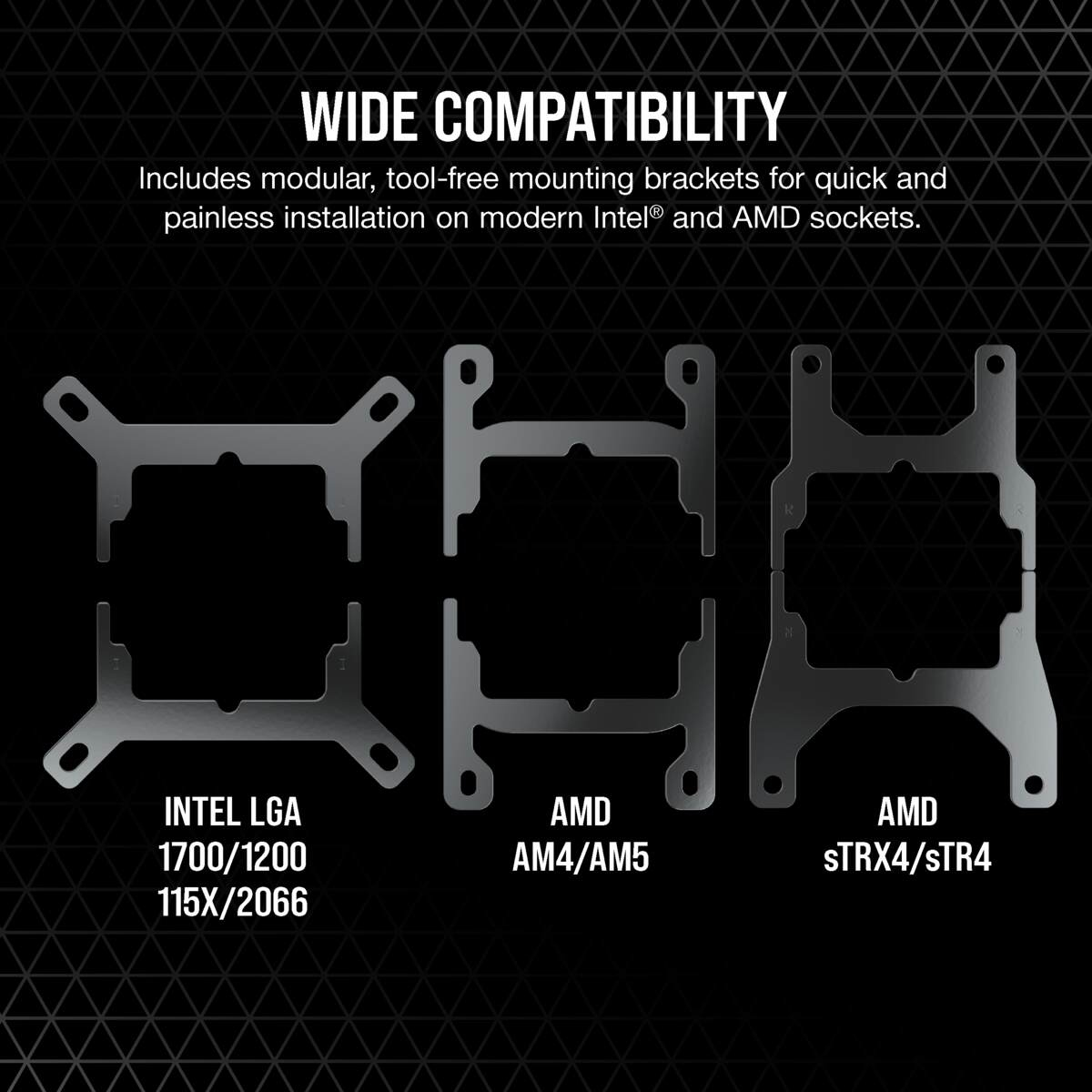 Refined Pump Head Design DYNAMIC LIGHTING AND STYLE With 16 RGB LEDs on a modern pump head design, the ELITE series deliver great cooling with the looks to match. Produce stunning, customizable lighting effects using CORSAIR iCUE software to add vivid colors and style to your system. iCUE Software YOUR SETUP AT YOUR COMMAND Adjust fan and pump speeds, control and synchronize your cooler's RGB lighting with all iCUE-compatible devices, and monitor CPU and coolant temperatures, all from a single intuitive interface. AF ELITE Series Fans Outperform The Competition Elevate your CPU performance with all-in-one liquid cooling driven by CORSAIR AF ELITE Series fans with AirGuide technology. QUIET OPERATION Specialized Cooling Modes Zero RPM and Variable Pump Speed specialized cooling modes in iCUE keep noise to a minimum when your system is idle or under light loads. Efficient Heat Transfer High-Performance Pump and Cold Plate Equipped with a thermally optimized copper cold plate and pre-applied thermal compound, the low-noise pump design delivers high-performance, quiet cooling. Modular and Widely Compatible Effortless Installation With tool-free mounting bracket, convenient USB Type-C port connection, and wide compatibility for the latest Intel® and AMD motherboard sockets, the Elite Series AIO coolers are designed for a quick and painless installation. |
