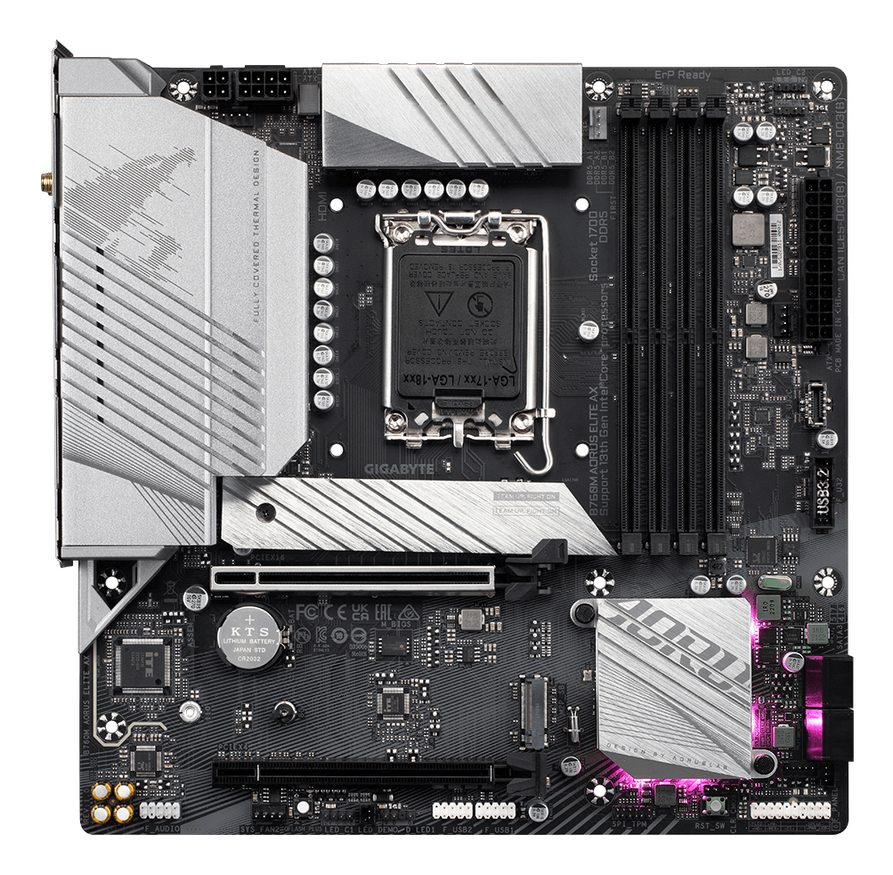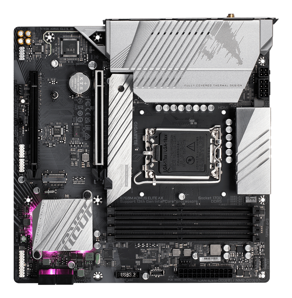 GIGABYTE B760M AORUS ELITE AX Motherboard - Supports Intel Core 14th Gen CPUs, 12*+1+1 Phases Digital VRM, up to 7800MHz DDR5 (OC), 2xPCIe 4.0 M.2, Wi-Fi 6E, 2.5GbE LAN, USB 3.2 Gen 2B760M AORUS ELITE AX Motherboard - Supports Intel Core 14th Gen CPUs, 12*+1+1 Phases Digital VRM, up to 7800MHz DDR5 (OC), 2xPCIe 4.0 M.2, Wi-Fi 6E, 2.5GbE LAN, USB 3.2 Gen 2
