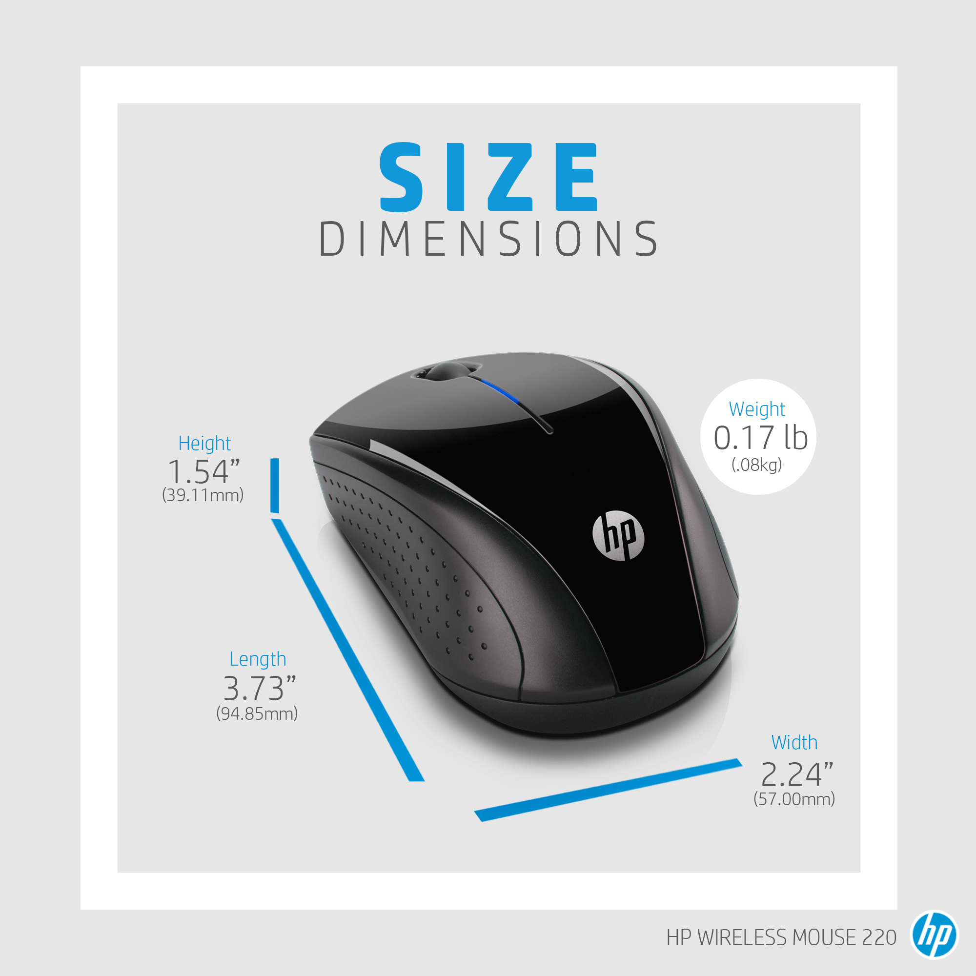 An ambidextrous travel-sized wireless mouse with long battery life Improve the way you connect and communicate, work and play. Built with strict HP standards and guidelines, this world-class HP Wireless Mouse 220 effortlessly blends sleek, modern design with life-enhancing, advanced features. |
