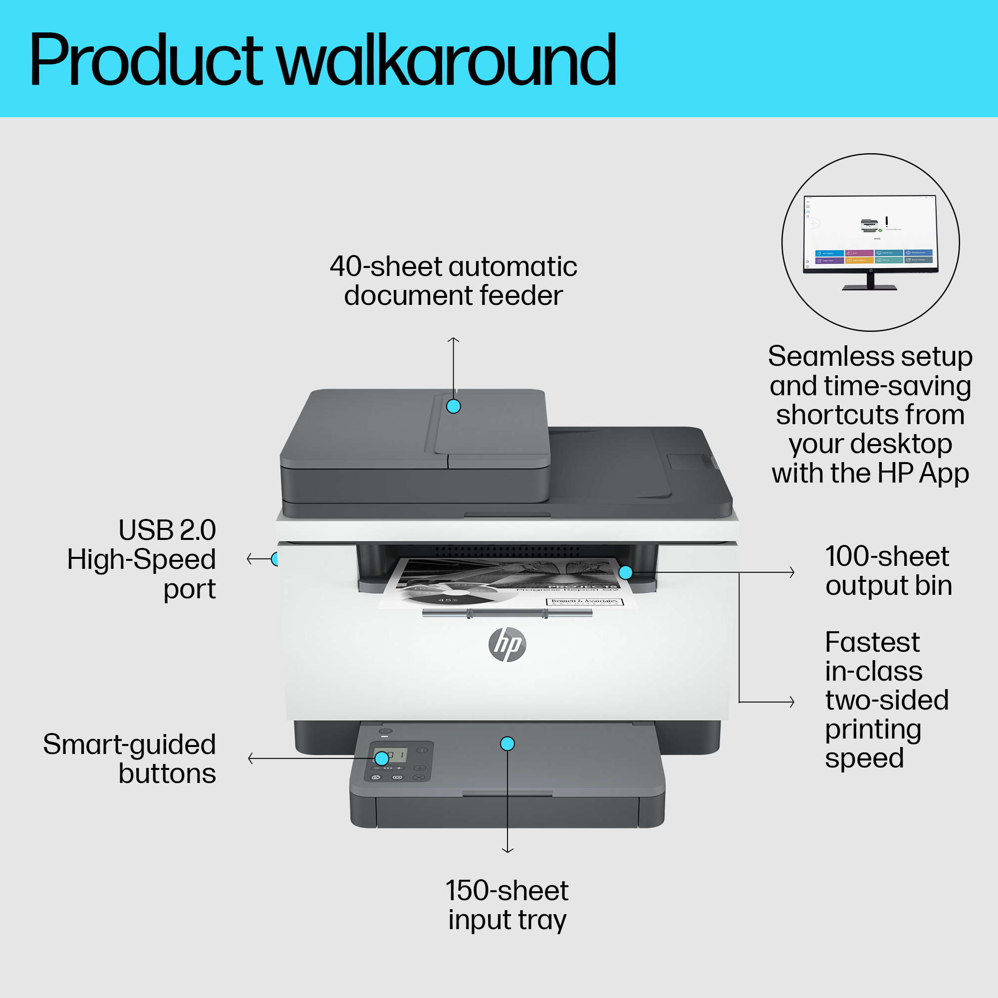 Super productive. Super compact. A high-productivity MFP with the fastest two-sided printing in its class,[2] an automatic feeder, and the time-saving HP app.[6][7] Count on a worry-free experience with simplified setup.. HP JetIntelligence Cartridge Dynamic security enabled printer Certain HP printers are intended to work only with cartridges that have a new or reused HP chip or electronic circuitry. These printers use dynamic security measures to block cartridges using a non-HP chip or electronic circuitry. Periodic firmware updates will maintain the effectiveness of these measures and block cartridges that previously worked. Reused HP chips and electronic circuitry enable the use of reused, remanufactured, and refilled cartridges. |