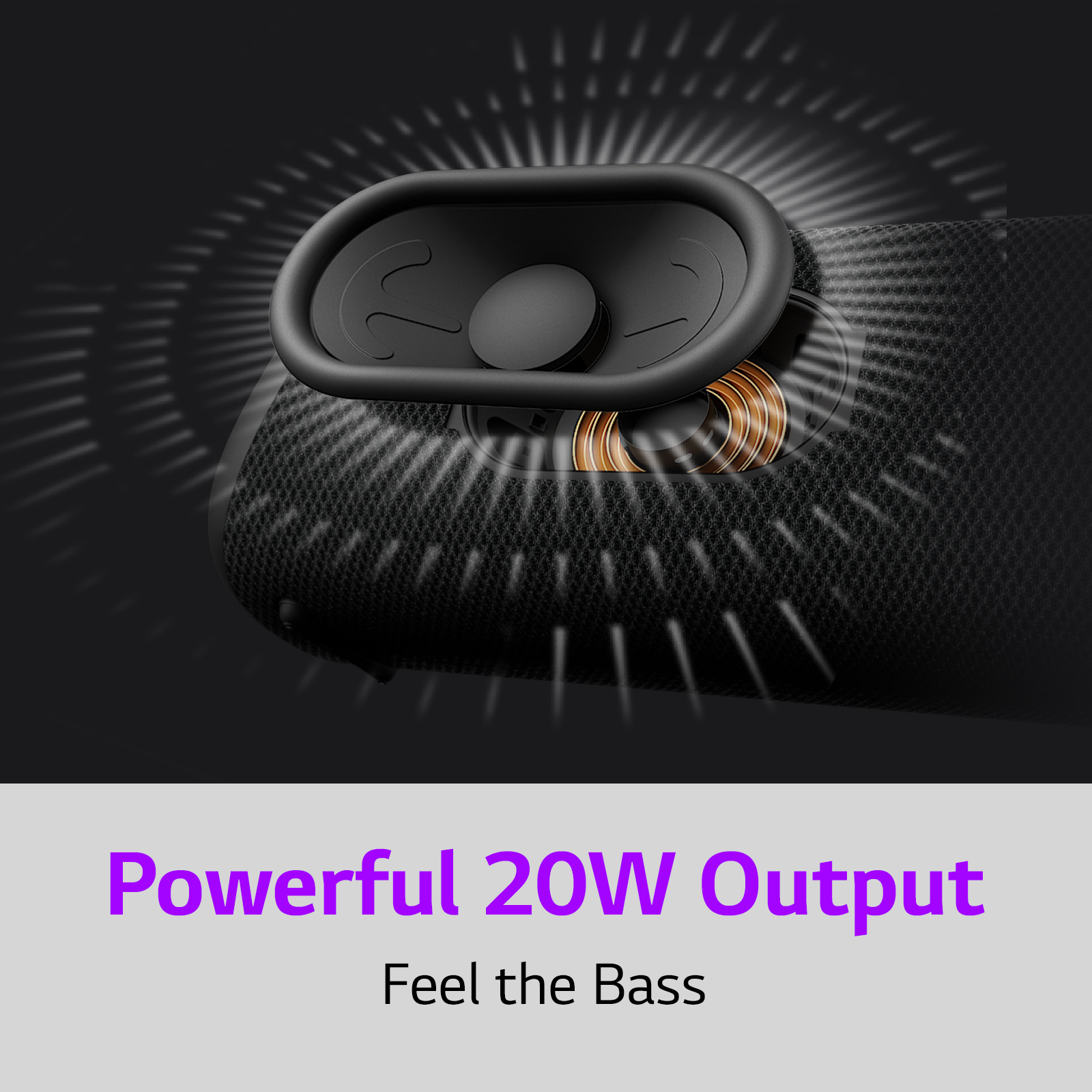 Play, Light and Boost. Play music, light up the mood and feel powerful sound with LG XBOOM Go. Feel Powerful Sound with LG XBOOM Go Experience LG XBOOM Go's remarkable sound that delivers deep bass and powerful sound together with LG’s latest sound technology. New Track-Type Woofer Delivers Powerful Sound Enjoy your favourite tracks with a track-type woofer. It produces a stunningly loud sound. Music Comes to Life with the Sound of 20W With powerful 20W output, you can rock to the beat and enjoy an elevated audio experience every time, from meditation to partying with friends. Feel that Bass Even at Low Volume The bass enhancement algorithm lets you hear and feel each distinct bass note, even when you turn the music down low. Sound Boost - Boost up Fun with Stronger Sound One press of Sound Boost and you can widen the sound field and enjoy your music louder. Give Colour to Every Track With an expanded selection of 16 million colours, you can play every song alongside every colour of the rainbow for an enriched music experience. IP67 - Loves Outdoor Adventures LG XBOOM Go is ready to crank the outdoors. With IP67, it can withstand water and dust so you never have to worry about keeping the music going. Keeps Music Powered Up to 18 Hours Your music will keep going from morning to evening with LG XBOOM Go XG5’s 18-hour battery. Speaker Phone - Answering Calls Hands-Free LG XBOOM Go makes sure you get an incoming call while the music plays. It switches so you can chat hands-free. |