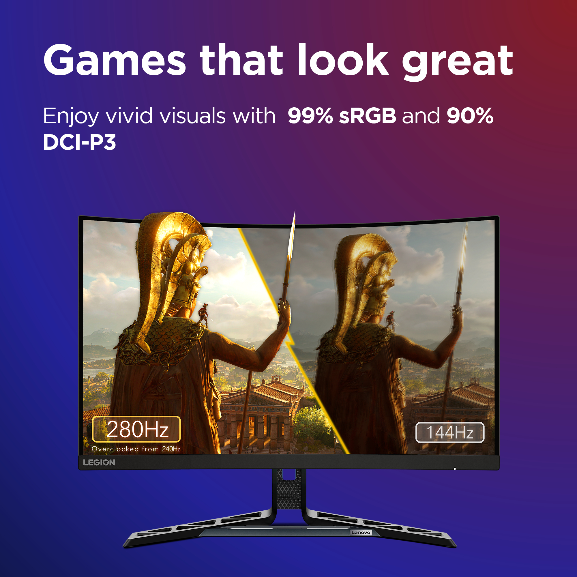 Enhanced immersion that helps you win • Experience deep immersion on the FHD, VA panel with its large 27-inch size and 1500R curvature. • Enjoy ultra-smooth gaming on the rapid 280Hz refresh rate. • You’ll never miss another shot with the ultra-responsive 0.5ms MPRT response times. • All your games play stutter-free while looking sharp thanks to AMD FreeSync and the ClearMR 8000 certification. Games that look and sound great • Whether it’s creating content or enjoying it, both can be done in vivid, true colors with 99% sRGB and 90% DCI-P3 color space coverage. • View all your games in high detail on the HDR display. • Get transported right into your games with rich, stereo audio powered by the two 3 watts speakers. Made for long gaming sessions • Game for hours on end using the monitor’s LTPS (Lift, Tilt, Pivot, Swivel) stand which lets you adjust the monitor to your preferred seating position. • Avoid strain as you game on with Lenovo’s Natural Low Blue Light technology which reduces harmful blue light without any color distortion. • Stay on top of the competition using Lenovo Artery’s tools (Lenovo Accessories and Display Manager) |