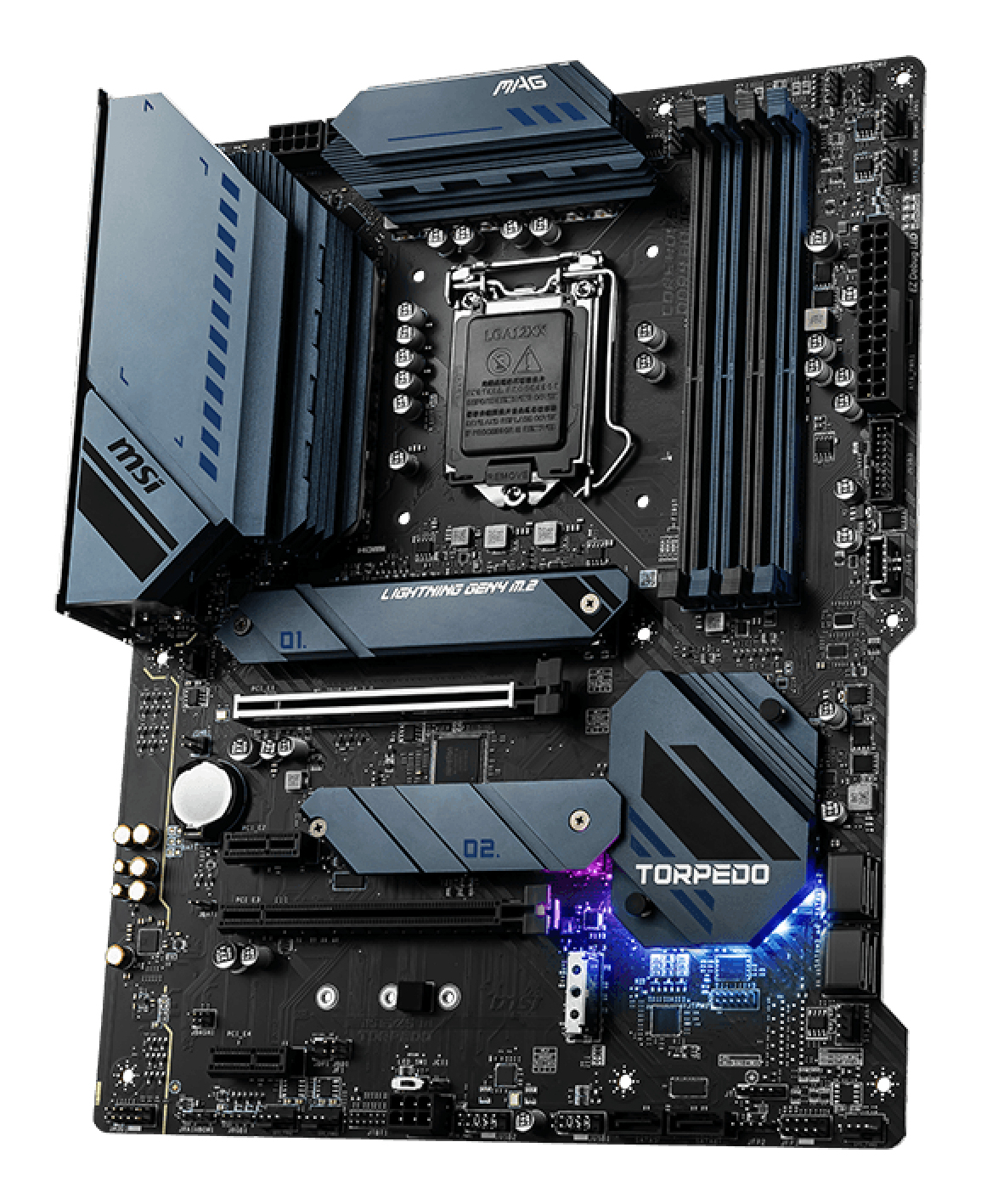MSI MAG Z590 TORPEDO motherboard Intel Z590 LGA 1200 (Socket H5) ATXATX, Intel Z590 chipset, Socket LGA 1200, 4xDDR4 DIMM slots, 7.1ch audio, 2.5- and Gigabit LAN, RGB