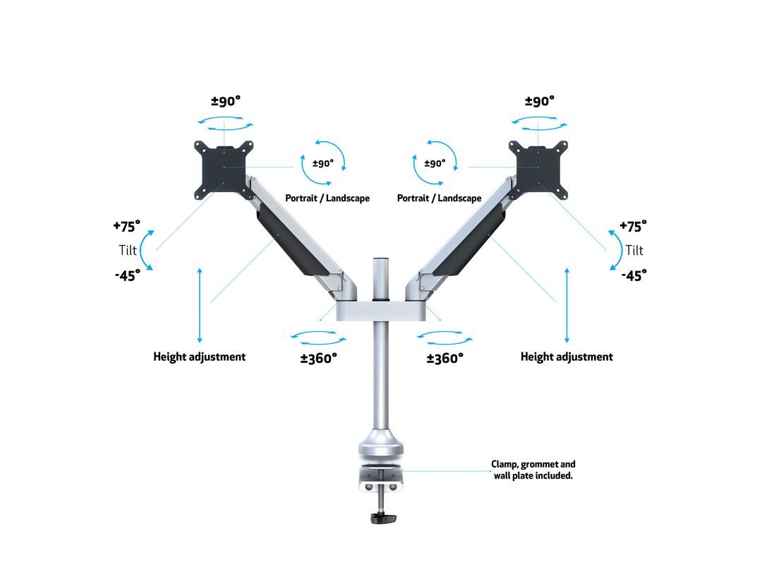 Multibrackets M VESA Gas Lift Arm Dual SilverMultibrackets M VESA Gas Lift Arm Dual - Mounting kit ( 2 articulating arms ) for 2 LCD displays - aluminum - silver - screen size: 15" - 32" - desk-mountable