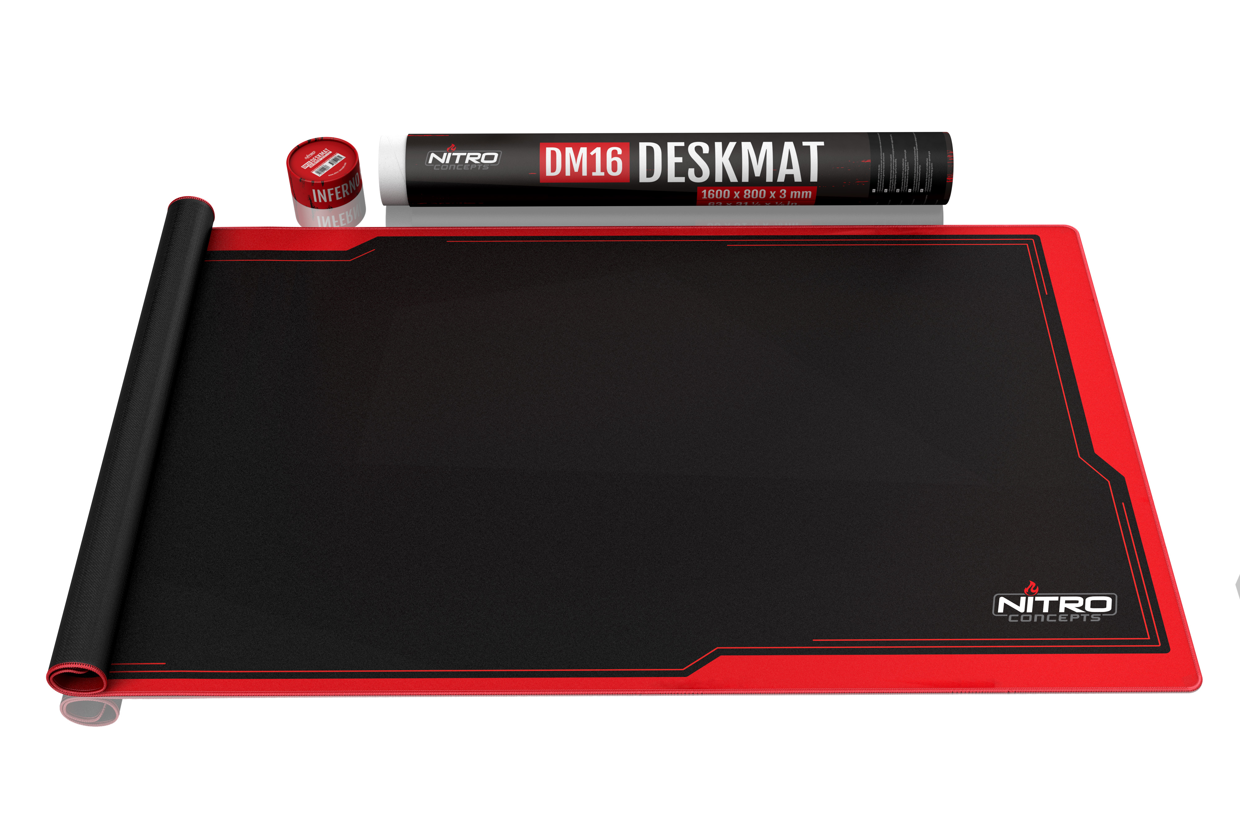 Nitro Concepts presents you the next step. Expanding the range of stylish gaming chairs, the arrival of the Deskmat now gives users the option to add an iconic colour coordinated addition to their office desk as well. The large surface for keyboards and gaming mice offers a dynamic yet smart design that will match the rest of your setup perfectly for outstanding and uniform look. HUGE PLAYING AREA FOR ALL PERIPHERALS The Nitro Concepts DM16 Deskmat offers a huge playing area of 160 x 80 cm and is designed to form the perfect base for your full-size keyboards and gaming mice. Aesthetically speaking, the gaming surface allows gamers to tie together the look of their overall desk setup – and thanks to the use of precisely crafted and woven materials, users will also enjoy the smoother mouse movement it brings. EXCEPTIONALLY DURABLE AND HIGH-QUALITY MATERIAL The materials used are exceptionally durable and the stitched outer edges are not just for looks either, they also help prevent unwanted fraying of the 3 mm thick mat over time. The natural rubber anti-slip underlay of the mat surface makes sure that even in the heat of online competition, the surface stays exactly where you need it. DIFFERENT COLOUR OPTIONS The DM16 Deskmat is available in Stealth Black and Inferno Red and offers a striking and dynamic design with classic all-black surface and integrated flame logo. The mat coordinates especially well with gaming chairs in similar colours from Nitro Concepts as well as black-red setups generally. |