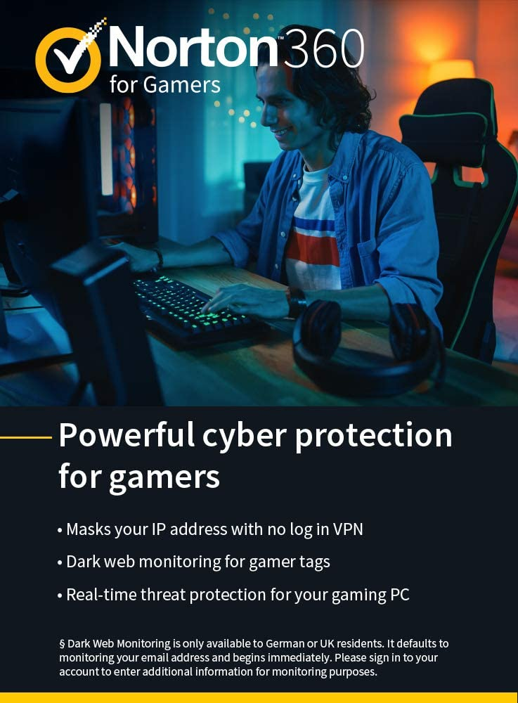 Powerful protection designed for PC Gamers Norton 360 for Gamers offers a powerful combination of protection gamers need for the game accounts on their PC, as well as for their online activity. As an added benefit, it does all this without constant interruptions to their gaming experience. •Norton 360 for Gamers offers protection for up to 3 PCs, Mac®, smartphones or tablets. •Notification Optimization is available on Windows only From casual to hard core, gamers’ personal information and digital assets are valuable, particularly to cybercriminals. What’s valuable in the gaming landscape needs protection. Norton 360 for Gamers offers a suite of features optimized for gamers to help provide the protection they need. Plan Description – Norton 360 for Gamers, advanced multi-layered protection for your PC to help protect against cyberthreats like malware, DDoS, doxxing, SWATing, and webcam takeovers11. Notifications are optimized so you’re only alerted if you’re under attack, at risk or you aren’t using a feature you’re entitled to. If you’re in Full-Screen Mode,4 all but critical security alerts are silenced. We’ll also monitor your gamer tags and personal information for exposure on the dark web.§ While 50GB PC Cloud Backup3,11 saves your game clips.5 Cloud Backup3,11 - PC Cloud Backup11 provides protection for hours of your best game highlights with 50GB of secure cloud storage. It allows you to automatically save your best clips so you can create more room for games.3,5 Dark Web Monitoring - Cybercriminals can meet anonymously on dark web sites to make illegal purchases of personal information Device Security - Multi-layered, advanced security helps protect against existing and emerging malware threats to your devices, including phishing attacks via chat, text and email, and security flaws in games and websites Full-Screen Detection4 - We detect when you’re playing in full-screen mode and automatically engage Silent Mode.4 Intrusion Prevention Scanning – Intrusion Prevention Scanning monitors request and response headers to help block browser-based cryptojacking Notification Optimization11 - When you’re gaming, streaming, doing work or anything else on your PC, we won’t interrupt you unless it’s important Online Threat Protection - Advanced security to help protect your gaming, private and financial information when you go online Parental Control‡ - Help manage your children’s online game activity, so you can spot potential dangers before they become a problem.‡ Password Manager*** - A strong password is important to protect your game accounts. Let us help you store complex passwords, credit card information and other credentials online – more securely SafeCam11 - Helps provide protection against attempts to obtain access to your webcam and compromise your privacy Safe Web - Norton Safe Web helps provide a safer way to browse, search, and shop online. It analyzes websites you navigate too to detect viruses, spyware, malware, or other cyberthreats and provides a safety ratings for them before it loads them into your browser Secure VPN - Browse more securely and anonymously by masking your IP address with a no-log VPN to help protect against DDoS attacks, doxxing and help prevent SWATing. With a single click, secure your connection each time you go online Web Isolation Mode*** - Helps protect your private information against phishing and malware attacks by isolating suspicious URL links as an image so you can see the content without compromising your personal information or IP address |
