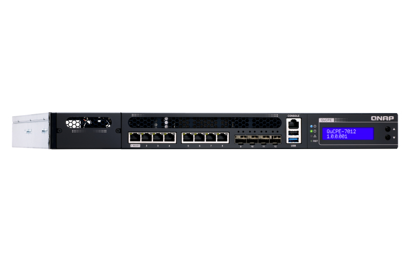 Network Virtualization Premise Equipment with an Intel® Xeon D multi-core processor, suitable for multi-user and multi-tasking business applications. QNAP’s QuCPE-7012 Network Virtualization Premise Equipment is a universal virtualization platform specifically designed for SMBs. The QuCPE-7012 adopts powerful Intel® Xeon® D multi-core processors that support Intel® QAT*, Smart NIC SR-IOV and DPDK hardware acceleration technologies and provides multi-port 2.5GbE, 10GbE, a network module slot and a PCIe slot for 25GbE/ 10GbE expandability. With enhanced bandwidth and computing performance for running multiple VMs and VNFs, the QuCPE-7012 is suitable for multi-user and multi-tasking business applications. The QuCPE-7012 also features the QNE (QNAP Network Equipment) OS for chaining VNF services and AMIZ Cloud centralized deployment and management platform to realize flexible Zero Touch Provisioning. Easily deploy virtual network environments with the 2-in-1 Premise Equipment When deploying virtualized environments, Enterprises often choose to install costly enterprise-grade solutions on edge servers or free solutions with limited technical support – a hard decision for resource-constricted SMBs. In addition, simultaneously running multiple VMs can impact network performance. QNAP’s QuCPE Network Virtualization Premise Equipment feature hardware acceleration technologies, QNAP’s proprietary QNE Network operating system and the AMIZ Cloud centralized management platform to help SMBs build a highly-optimized virtual network infrastructure. The QNE Network Operating System completes the virtual network infrastructure QNAP’s proprietary QNE Network operating system supports the intuitive Network Service Composer and Software-Defined WAN (SD-WAN), allowing for flexible network deployment and multi-site network infrastructure expansion. By supporting Virtual Network Functions (VNF), Virtual Machines and Containers, QNE Network integrates network, computing and application services to realize network virtualization, application virtualization and efficient management, greatly lowering management and maintenance complexity. AMIZ Cloud - powerful centralized VM management platform The AMIZ Cloud centralized management platform enables IT administrator at HQ to centrally monitor all edge devices, virtual machines and containers. Supporting High Availability, troubleshooting, and remote management via the Account Center, the QuCPE-7012 helps enterprises achieve Zero Touch Provisioning, thus enhancing IT deployment efficiency and reducing maintenance costs. Efficient management via Service Composer with visualized topology With the visualized topology of the Network Service Composer, you can easily set up VNFs or VMs, create virtual switches , and allocate physical network resources for chained services by drag and drop. When settings change, you can directly add/remove individual VNFs using the service composer, greatly simplifying operational network combination. Run your VM/VNF Directly on QuCPE QNE Network inherits versatile virtual applications from the QNAP QTS system. QuCPE can simultaneously run multiple virtual machines, software containers, and even bespoke user-made virtual machines in Virtualization Station and Container Station, assisting SMBs in improving deployment and management flexibility while streamlining hardware costs. Powerful server-grade hardware architecture With multi-port capabilities and expandable architecture, the QuCPE-7012 enables optimal storage, computing, and deployment flexibility to fulfill performance and application diversification requirements. Intel hardware acceleration technologies boost virtual network performance Specifically designed for running virtualization applications, the QuCPE-7012 Network Virtualization Premise Equipment adopts multiple Intel hardware acceleration technologies to allow direct hardware access, thus enhancing VM and virtual network transmission performance. DPDK (Data Plane Development Kit) Allows data to bypass the OS Kernel and directly enter user space to offer a double packet transmission rate (Total T/R x L2) and improve overall virtualization application performance. Smart NIC SR-IOV (Single Root I/O Virtualization) By installing an SR-IOV compatible PCIe SmartNIC, you can allocate bandwidth resources from a physical network card directly to VMs. With traffic bypassing the Hypervisor vSwitch, it helps enhance I/O throughout and network efficiency, ensuring reliable VM applications and reduced CPU overheads. Intel QAT (Intel QuickAssist Technology) Offloads computationally-intensive compression and improves IPSec cryptography VPN performance. SD-WAN enables chaining network services QNE incorporates QNAP’s QuWAN SD-WAN solution (subscription-free) to form encrypted VPN tunnels with other QNAP devices based in multiple sites and achieve multi-site network services chaining. For example, you can automatically create a firewall network (using QuWAN and pfSense VNFs) to enhance WAN security in the Service Composer UI using drag-and-drop. Smart IT tools for network management efficiency QNE Network provides comprehensive management features for Smart IT network management. Notification Center Consolidates QTS system events and alerts, providing a single-app solution for notifications instead of having to configure individual settings in multiple apps. Notifications can be sent through email, SMS, and other communication apps. QuLog Center Centralizes statistical rankings of error/warning events and access, assisting IT staff in monitoring and responding to potential system risks. Security Center Provides security management for IT staff, including managing SSL certificates. Other features include automatically detecting history edits to prevent malicious edits. Zabbix Zabbix is a third-party solution that automatically detects devices and monitors network status. Zabbix provides user-friendly topology and network repor