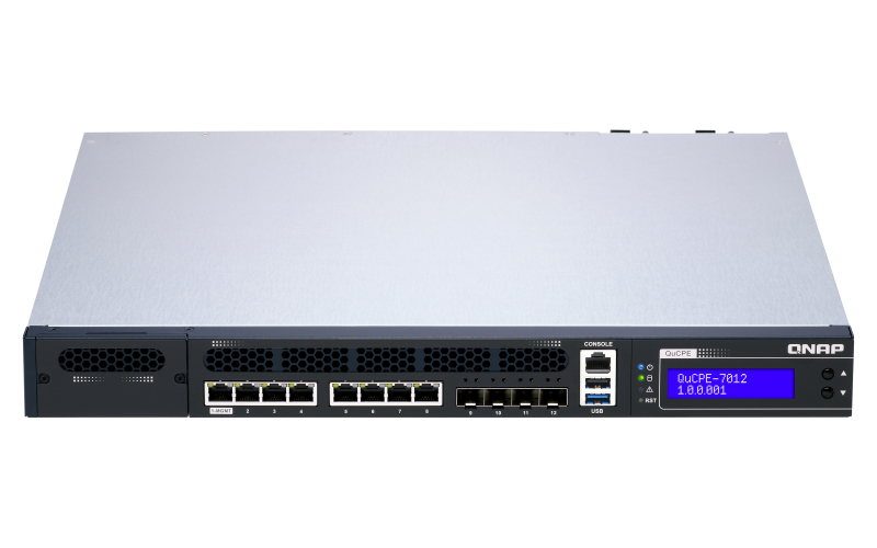 QNAP QuCPE-70121U, Intel Xeon D-2146NT (8x 2.3GHz), 32GB DDR4 2666 MHz, 2x 2.5" SATA, 4x 10GbE SFP+, 8x RJ-45