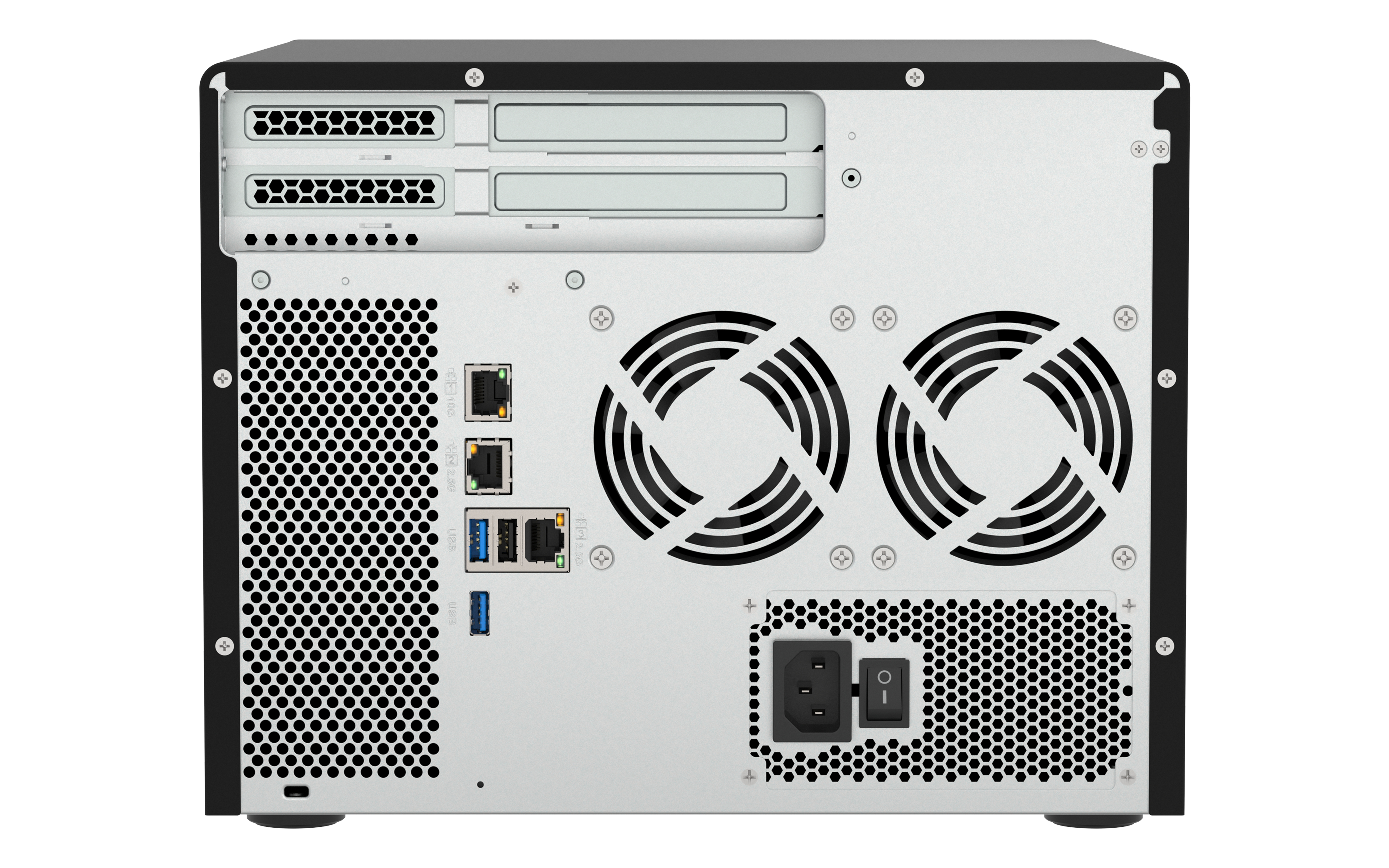 High-performance 8-core 10GbE NAS for deploying hybrid-infrastructure storage and high-speed virtualization applications The high-capacity TS-855X has six 3.5-inch SATA drive bays (for HDDs), two 2.5-inch SATA drive bays (for SSDs) and an 8-core processor supporting Intel® QuickAssist Technology (QAT), greatly assisting businesses in deploying a data storage and virtualization environment. The built-in 10GbE/2.5GbE high-speed connectivity helps realize fast data access, backup/restoration, file server, and virtualization applications. Running the QTS operating system as standard, the TS-855X can be switched to use the ZFS-based QuTS hero operating system based on your requirements. The TS-855X will be available and supported by QNAP for an extended period (up to 2027), ideal for businesses requiring matching NAS models deployed in long-term projects. Ultimate 8-core performance with up to 128 GB RAM and Intel® QuickAssist Technology The TS-855X delivers exceptional 8-core performance for running multiple concurrent tasks. AES-NI encryption and Intel® QuickAssist Technology (QAT) are supported to offload resource-demanding compression and improving IPsec/SSL cryptography performance. The TS-855X comes with four UDIMM DDR4 slots (8 GB preinstalled) that can be upgraded to 128 GB ECC RAM for higher workloads. Combining high performance, reliability, and capacity, the TS-855X is an all-round budget-friendly storage solution for diverse applications, such as file servers, high-speed storage/backup/recovery, and virtualization. Build a High-Speed 10GbE/2.5GbE Network Environment Featuring two native 2.5GbE RJ45 (2.5G/1G/100M) LAN ports and a 10GBASE-T (2.5G/1G/100M) port, the TS-855X satisfies bandwidth and reliability demanding business applications including virtualization, large file transfers, high-speed backup/restoration, and real-time applications. Combine the dual 2.5GbE ports with SMB 3.0 Multichannel for up to 5 Gbps fault-tolerant connections! QNAP also offers numerous managed/unmanaged 2.5GbE/10GbE switches, assisting organizations in implementing high-speed, secure, and scalable network environments without going over budget. M.2 PCIe slots for SSD caching and accelerated AI-powered image recognition The TS-855X comes with two M.2 PCIe Gen 3 slots that allow for installing M.2 2280 NVMe SSDs (including SSD brands of Micron®, Seagate® and WD®) or Edge TPU (sold separately) to boost NAS performance. SSD caching Configure SSD caching with M.2 SSDs and obtain optimal I/O and reduced latency without occupying any 3.5-inch drive bays. Auto Tiering Qtier™ technology empowers the TS-855X with auto tiering to continuously optimize storage efficiency across all installed storage devices. Faster image recognition with Edge TPU Coral M.2 Accelerator with Edge TPU provides an affordable solution to leverage AI acceleration for faster image recognition in your NAS applications. Upgrade to 25GbE network with PCIe expandability The TS-855X has two PCIe Gen 3 x4 slots that allow for installing various expansion cards to increase its application potential. Simple Backup Superior hardware performance with an all-in-one Backup Solution to speed up backup/recovery tasks. PC and Mac backup Sync your computer files to NAS with Qsync. TS-855X also supports Time Machine for Mac computers. License-free VM backup Back up multiple VMware® and Hyper-V™ VMs using Hyper Data Protector. File server backup Supports multiple protocols such as Rsync, FTP and CIFS for backing up different file servers. SaaS Business Backup Solution Use Boxafe to easily back up Google™ Workspace and Microsoft 365® business account data. Google Photos and WordPress backup The exclusive MARS service enables backing up Google Photos and WordPress databases and files to NAS. Multi-version snapshots mitigate ransomware threats The TS-855X supports block-based snapshots that record the state of the system at any time. It helps protect data, which can be restored back to a specific point of time, greatly helping in mitigating the threat of ransomware. Volume and LUN snapshots Take snapshots in seconds and revert the entire volume/LUN back to a specific point in time to prevent loss of important data. Instantly restore snapshots Snapshot content can be quickly restored to a local NAS, or restored on a folder/file basis to a local/remote NAS or cloud storage. You can also conveniently view and restore snapshots from the client side. Back up snapshots Multiply data protection by backing up snapshot files! Replicate volume/LUN snapshots in the TS-855X to a remote NAS (Snapshot Replica) by copying only the changes made. This helps save time & bandwidth, and can be run manually or on a scheduled basis. Reliable, high-performance storage for virtualization The TS-855X supports block-based iSCSI LUN as a reliable, high-performance, and affordable storage solution for mainstream virtualization environments. It supports VMware® VAAI and Microsoft® ODX to increase performance by offloading server loading for ESXi server and Hyper-V respectively. All-in-one solution for hosting virtual machines and containers By running multiple virtual machines and containers on the TS-855X, you can deploy multi-tenant environments and applications to increase management efficiency and save hardware costs. Coupled with the Network & Virtual Switch app that boosts interoperability between virtual machines, containers, QNAP NAS, and other physical devices on the network, you can flexibly allocate physical and virtual network resources to simplify network deployment. Virtualization Station Run multiple Windows®, Linux®, UNIX®, Android™, and QuTScloud virtual machines and access them via a web browser or Virtual Network Computing (VNC). Businesses can run virtualized server applications on a single NAS without needing additional physical servers. Container Station Experience Docker®, LXD, and Kata Containers lightweight virtualization technologies, d