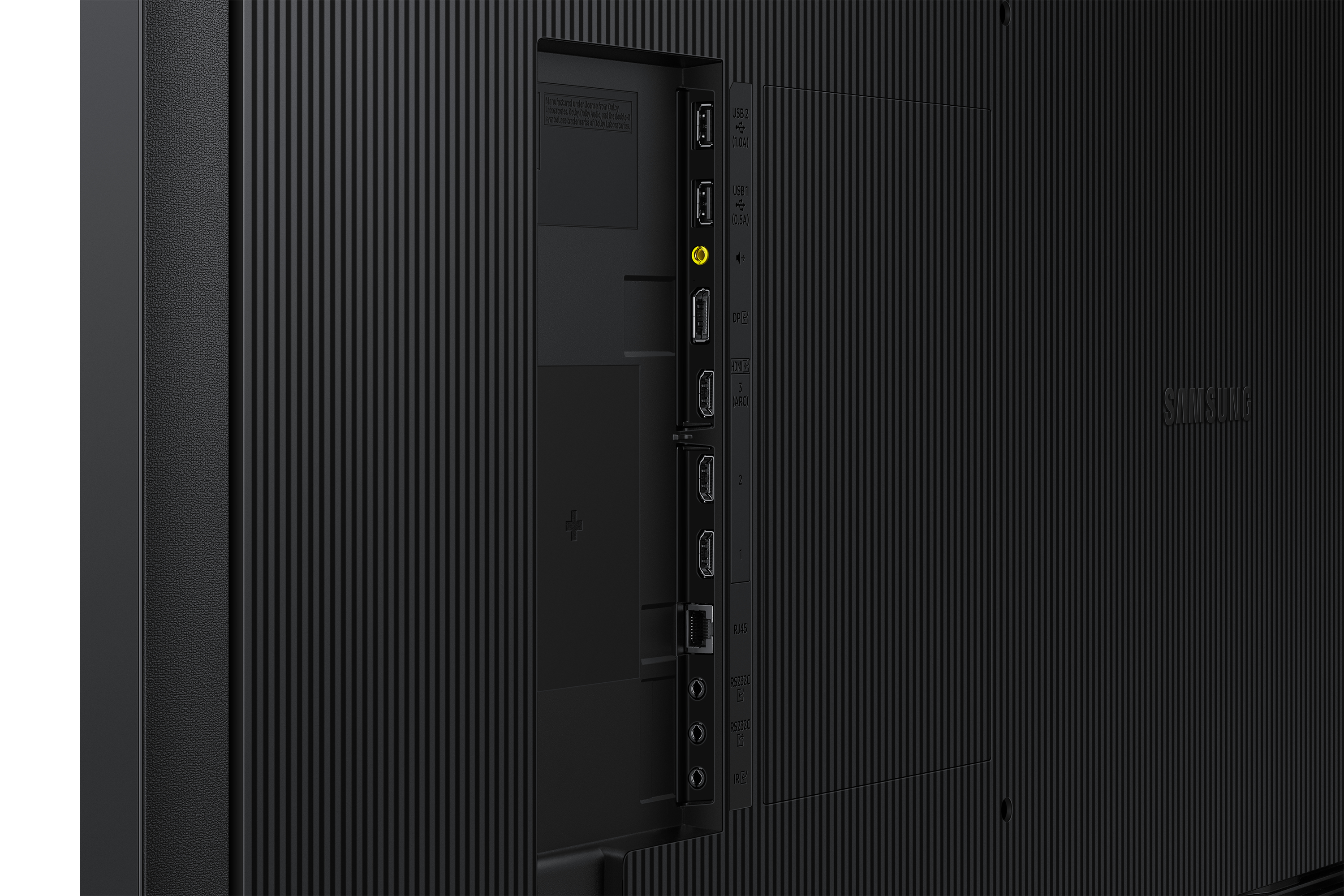 Maximum impact in minimum space Ultra Slim Depth The QMC's unparalleled ultra-slim thickness of 28.5mm makes it the thinnest option in Samsung’s UHD series. It comes with the Slim Fit Wall Mount, which allows you to install it neatly and easily in any environment. QMC optimizes space with its sleek design that blends seamlessly into your business. Slim design. Stunning performance Introducing QMC, the slimmest display in the Samsung UHD Signage. It brings elegance to business while maximizing space. Its enhanced internal solutions and intuitive home screen UX make it easy to use. Businesses in various verticals can achieve growth with QMC’s efficiency and design innovation. Clean visuals in landscape or portrait mode Even Bezel The bezels are consistent and even on all four sides of the display, with the same thickness and dimensions. The new even bezel design prevents any visual issues from arising when the display is adjusted to portrait mode. Secure and even mounting Centered VESA Holes The central positioning of the VESA holes on the back of the display evenly distribute its weight for secure mounting. With the VESA holes now shifted to the center, users can adjust the display to portrait mode without the display tilting unintentionally. Lifelike color, born in a pure state with fine crystal Dynamic Crystal Color Every picture is more immersive with one billion shades of color. Dynamic Crystal Color delivers true-to-life variations, allowing customers to see every subtlety. View lifelike shades of color in powerful 4K Quantum Processor Lite 4K Samsung’s industry-leading video processing technology enhances every piece of content for clarity and consistency. Intelligent UHD upscaling technology, powered by Samsung’s Quantum Processor Lite 4K, elevates lower-resolution video to UHD, providing a professional picture quality. Ensure critical information is always visible Non-glare QMC displays feature reliable, non-glare panels that provide better visibility from all angles, any time of day. The non-glare display enables businesses to deliver accurate information in critical locations, like airports and train stations. Connect with convenience Home UI QMC boasts greater usability with an upgraded home screen UI. Popular categories like Favorites, Sources and Settings are displayed on the same screen for convenient availability. The Favorites folder grants users quick, easy access to frequently used features in a single click. Collaborate between screens with wire-free speed Smartview+ SmartView+ enables wireless screen sharing without cable connections, ensuring easy collaboration. Users can now enable the screen sharing function at the start of a meeting, allowing the meeting admin to quickly switch between screens with one click. Simplified calibration between screens with mobile app Smart Calibration Guarantee complete brand consistency across every display in every location. Using the Samsung mobile app, Smart Calibration ensures every display is calibrated correctly, showcasing brand logos and other collateral in the exact colors required. Enhance professional environments with expert tools Professional Modes Built-in professional modes enable more possibilities in specific verticals. Director Mode minimizes post-processing, aligning content to the director’s original intention. Medical teams can simulate medical images such as X-rays with DICOM Simulation Mode, meeting DICOM's full grayscale standards Change the way to manage your display Samsung VXT Samsung VXT CMS is a cloud-based solution that brings together content management and remote device management capabilities, allowing users to remotely manage hardware settings and troubleshoot issues while effortlessly creating and deploying content with no previous training needed. Everyday Sustainability Energy Star / EPEAT / TÜV Rheinland Carbon Footprint Samsung is making diverse efforts to reduce our environmental impact in smart signage, and encouraging users to pursue a more sustainable life. As a result, QMC series has earned a series of certifications for environmentally preferable products from highly recognized institutes in Germany and the U.S. |