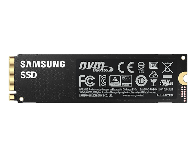 Next-level SSD performance Unleash the power of the Samsung PCIe 4.0 NVMe™ SSD 980 PRO for your next-level computing. Leveraging the PCIe 4.0 interface, the 980 PRO delivers double the data transfer rate of PCIe 3.0 while being backward compatible for PCIe 3.0 for added versatility. Maximum speed Powered by Samsung in-house controller for PCIe 4.0 SSD, the 980 PRO is optimised for speed. It delivers read speeds up to 7,000 MB/s, making it 2 times faster than PCIe 3.0 SSDs and 12.7 times faster than SATA SSDs. The 980 PRO achieves max speeds on PCIe 4.0 and may vary in other environments. A winning combination Designed with hardcore gamers and tech-savvy users in mind, the 980 PRO offers high-performance bandwidth and throughput for heavy-duty applications in gaming, graphics, data analytics and more. It's fast at loading games, so you can play more and wait less. Efficient M.2 SSD The 980 PRO comes in a compact M.2 2280 form factor, which can be easily plugged into desktops and laptops for maximum board design flexibility. The drive is suitable for building high-performance computing systems due to its optimised power efficiency. Reliable thermal control High-performance SSDs usually require high-performance thermal control. To ensure stable performance, the 980 PRO uses nickel coating to help manage the controller's heat level and a heat spreader label to deliver effective thermal control of the NAND chip. Smart thermal solution Embedded with Samsung's cutting-edge thermal control algorithm, the 980 PRO manages heat on its own to deliver durable and reliable performance. To minimise performance fluctuations in the long haul, Samsung's Dynamic Thermal Guard technology maintains the 980 PRO's temperature at optimal levels. Samsung Magician software Unlock the full power of the 980 PRO with Samsung Magician's intuitive yet advanced optimisation tools. Monitor drive health, optimise performance, protect valuable data and receive important updates with Magician to ensure you're always getting the best performance out of your SSD. World's No. 1 flash memory Experience superior performance and reliability that you can only get from the world's number one brand for flash memory since 2003. All firmware and components, including Samsung's world-renowned DRAM and NAND, are produced in-house, allowing end-to-end integration for quality you can trust. |