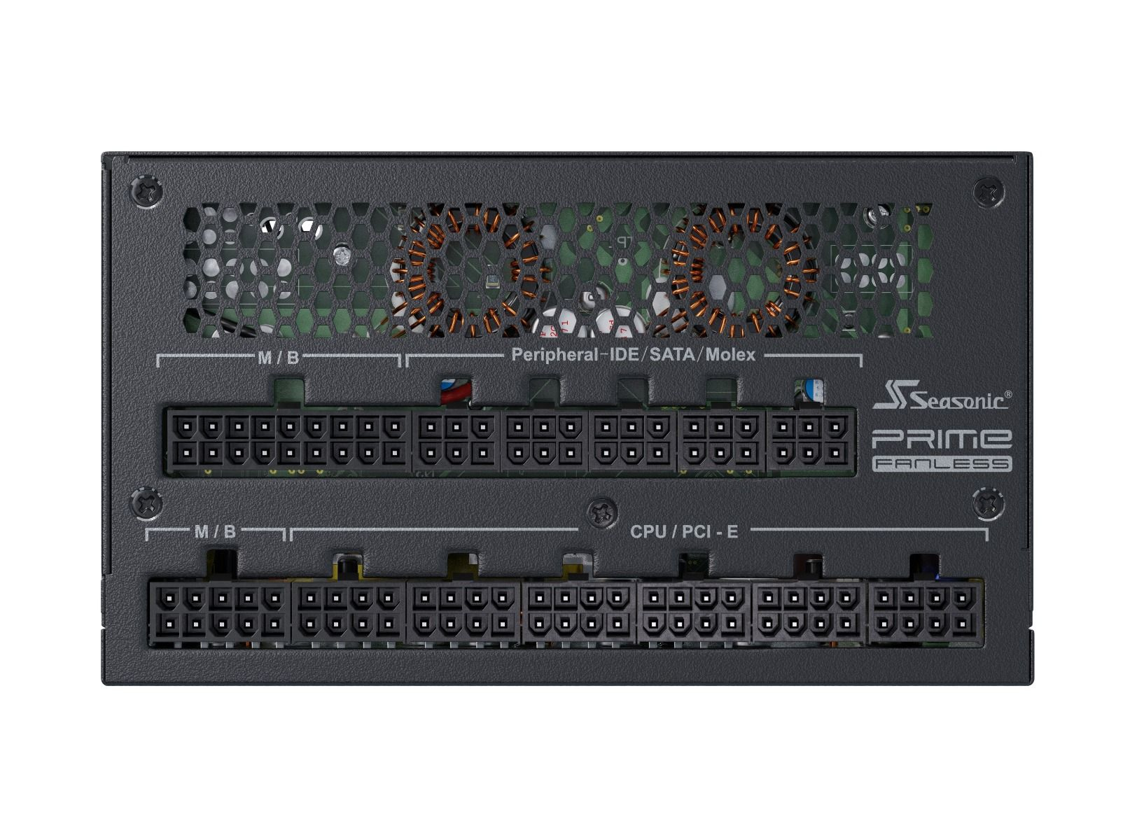PRIME Fanless TX utilizes the fanless technology, which eliminates the fan noise completely, ensuring truly quiet operation. The unit not only is rated to be 80PLUS Titanium efficient, but it also has the highest power output on the fanless power supply market at the moment. The power supply is ideal any situations that demand silence from the equipment. The high quality components inside and the innovative circuit design result in clean and stable power output. The fully modular cables allow for better cable management in the computer case. 80 PLUS® Titanium The PRIME Titanium Series achieves the highest level of 80 PLUS® Titanium certification on the market with its 94 % efficiency at 50 % system load. Micro Tolerance Load Regulation Seasonic’s latest design keeps the output voltage within a very tight range, achieving under 0.5 % load regulation. This impressive electrical performance and stability makes this power supply an ideal choice for high-performance systems. Seasonic Fanless Design Cooling fans inside the power supply are replaced by passive cooling based on heat dissipation. Silent operation does not only provide a more pleasant working environment but it also results in less power consumption and lower utility bills. |