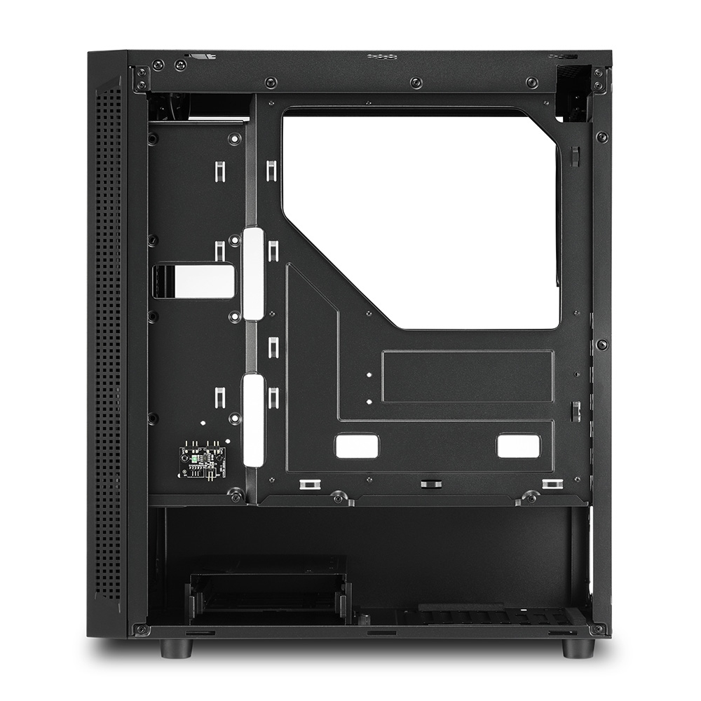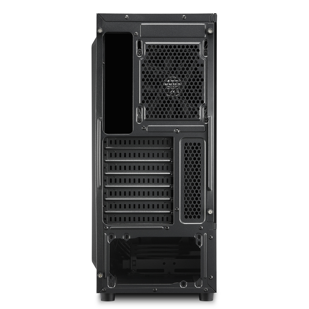 The RGB Slider is a compact midi-ATX case with a sleek look. While the PC case focuses on the essentials, it still has some advantages to offer which set it apart from other cases in its class. Thanks to the black finish and its simple form, it is pleasantly discreet and unassuming. However, the case also has highlights such as the side panel made of tempered glass, the I/O panel with two USB 3.0 ports, and the RGB LED strip integrated in the front panel. If the manual color control is used, the strip can be lit in 14 different lighting modes. Additional lighting elements can also be added and customized via the built-in RGB controller. When it comes to internal installation options, the RGB Slider also offers more than meets the eye. Simple yet Stylish Front Panel. The matte black front panel of the case is decorated with an RGB LED strip which complements the minimalist look with flowing, luminescent colors. The strip appears to be gently sliding across its middle, which is where the case gets its name, and can be illuminated in 14 preset modes via the integrated RGB controller. Alternatively, it can be customized through compatible mainboards, using Asus Aura Sync, MSI Mystic Light Sync, Gigabyte Fusion and ASRock Polychrome SYNC. The built-in RGB controller also makes it possible to use additional RGB components which have a 5V-D-Coded-G or 5V-D-G pinout. Furthermore, the front of the top panel has all the necessary connections, including three USB ports, two of which are for fast USB 3.0 access. A Crystal-Clear Presentation for Hardware. An unobstructed view of the installed hardware is possible through the left side. This is ensured by the side panel of the case, which is made entirely of tempered glass. Your own build can thus be properly showcased inside the minimalist case. So that nothing obscures the view, and the built-in components come into their own, there are no visible screws on the side panel. The attachment is at the rear of the case and therefore out of the field of view. Optimal Air Intake Possibilities. The RGB Slider is designed to offer sufficient installation possibilities to ensure optimal airflow. A 120 mm fan is pre-installed at the back of the case, ready to discharge warm air outside. If desired, more fans can be installed within the case: There is room behind the front panel for up to three optional 120 mm fans. Two 120 mm fans or two larger 140 mm fans can also be installed under the top panel. A 120 mm fan can also be installed on the tunnel to further cool the storage drives. Space for Storage Space. For all PC owners with a preference for a lot of storage space, there are plenty of locations for storage drives in the RGB Slider. Three compact SSDs can be mounted either on the mainboard tray or on the power supply tunnel. Two 3.5" HDDs can be installed in the HDD/SSD cage, which can, of course, also accommodate SSDs if required. Suitable for Larger Hardware Components. With its compact size, the RGB Slider can be easily integrated into smaller setups or ones that are kept intentionally minimalist. Nevertheless, larger hardware components can also be easily installed in the case. The CPU cooler can be up to 15.7 cm in size, which leaves enough space for graphics cards up to 33.5 cm long. |