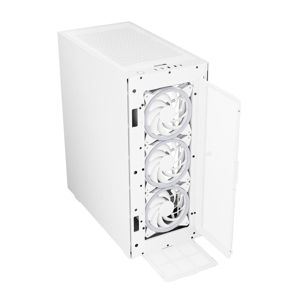 Revolutionize your gaming system with the REV300, an innovative ATX case built for performance. The well-thought-out concept gives you a whole new feeling when assembling your gaming build. A mesh front panel and seven pre-installed PWM fans optimize the airflow and maximize the performance of your hardware. Thanks to the addressable LEDs of the fans and the tempered glass side panel, everything that is built into the REV300 will be shown to its best advantage. REVolution instead of Tradition. With our REV series, we have put traditional case design the other way around. The REV300 is no exception here, and, as before, the inside can be viewed through a tempered glass side panel which is positioned on the right of the case. Perfect for anyone who wants to position their powerful gaming system on the left-side of their setup. What is also REVolutionary is the installation of all components around a 90-degree rotated mainboard. The cables and connections from the mainboard are led into a special cable compartment on the top of the case. The I/O panel not only provides four conventional USB connections, but it also offers a port for devices which require a USB Type-C connection. Generously Built and Elegantly Designed. The REV300 stands out thanks to its stately size and elegant looks. The geometrical designs at the corners of mesh-covered front panel set a visual accent and direct the focus of attention to the illumination of addressable RGB LED fans. The impressive lighting of the REV300 comes much more into its own thanks to the minimalist design of the case. Seven fully addressable RGB LED fans immerse the sizable case in bright colors, turning it into a dream for RGB enthusiasts. Maximum Airflow. Maximum Power. Anyone who owns a demanding gaming system knows that the proper airflow is a must. The REV300 is best equipped for this. Seven fans are already pre-installed in the case, so that you are ready to start and can benefit from a maximum cooling of your hardware. A mesh grille extends over the entire front panel, clearing the way for plenty of air, which is fed through three 140 mm RGB LED fans. Three more 120 mm RGB LED fans are installed at the rear. Supplemented by an additional 120 mm RGB LED fan under the top panel, an efficient airflow is created that keeps systems cool even when running at full load. If water cooling is required, two radiators can be installed within the REV300 at the same time. A 360 mm radiator can be installed at the rear, while there is even space for a gigantic 420 mm radiator behind the front panel. For Systems which Deserve to be Seen. The REV300 provides a deep insight of the inside of the case and the installed hardware components. A tempered glass side panel on the right-side of the case allows the system to be shown to its full. The side panel is conveniently rested on hinges at the rear, making it easy to open and close. A magnetic closure ensures that everything is securely shut. Screws or other distracting elements are thus completely banned from view and the hardware components are easily accessible. Together with the illumination from a total of seven RGB LED fans, the presentation is made perfect. Make Room for Your Monster Build. No case in the REV series was as big as the REV300. Accordingly, the ATX case creates plenty of space for large and powerful hardware. Here is room for everything that needs it. Graphics cards with a length of up to 34.5 cm can be easily installed. A power supply with a length of 27 cm or a CPU cooler with a height of 17.7 cm will easily find room here. If masses of data storage is needed, you can equip the REV300 with four 3.5" or five 2.5" storage drives. In addition, dust filters help keep the inside of the case clean. A particularly large pull-out dust filter is placed on the bottom panel to stop dust entering from underneath the case. |