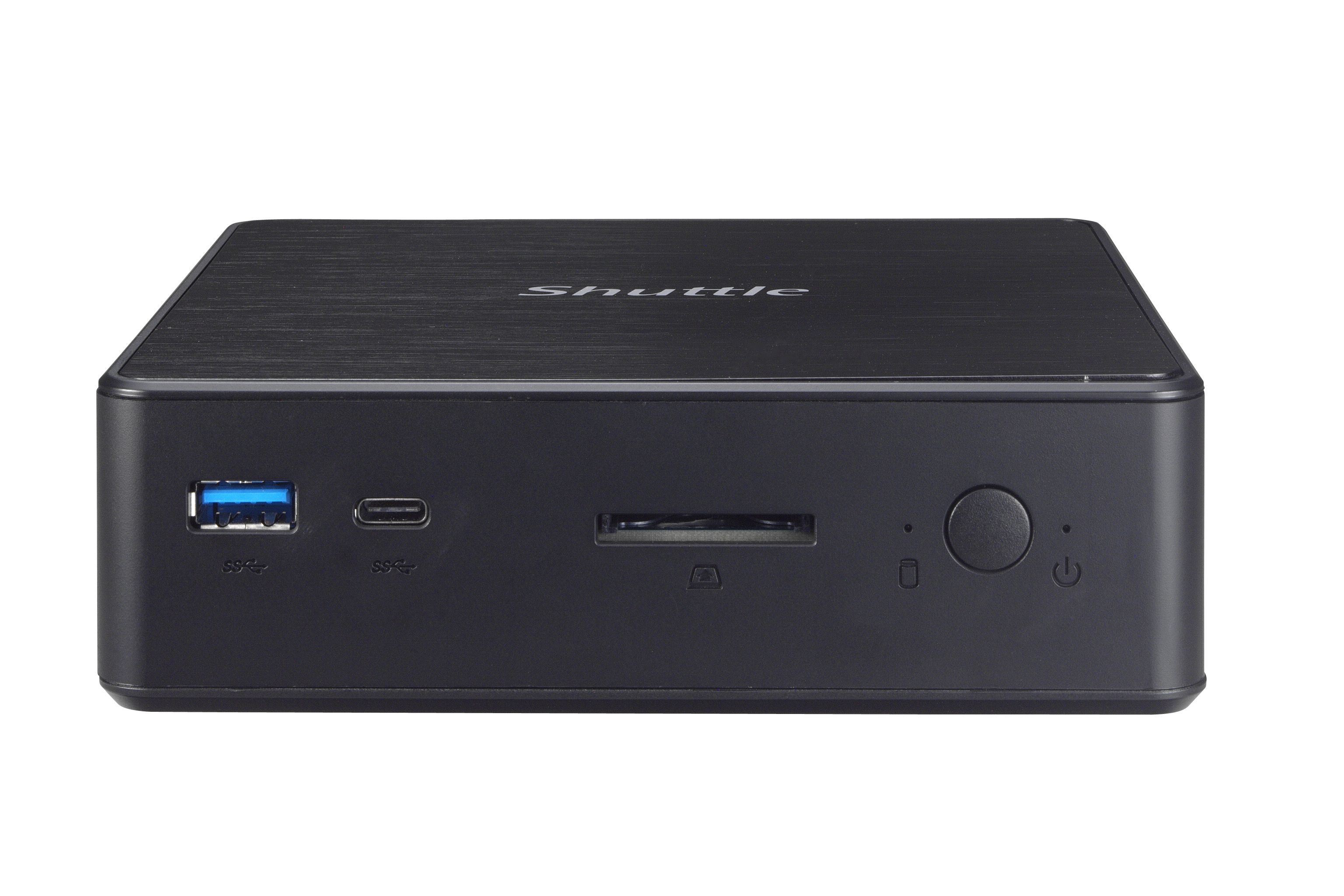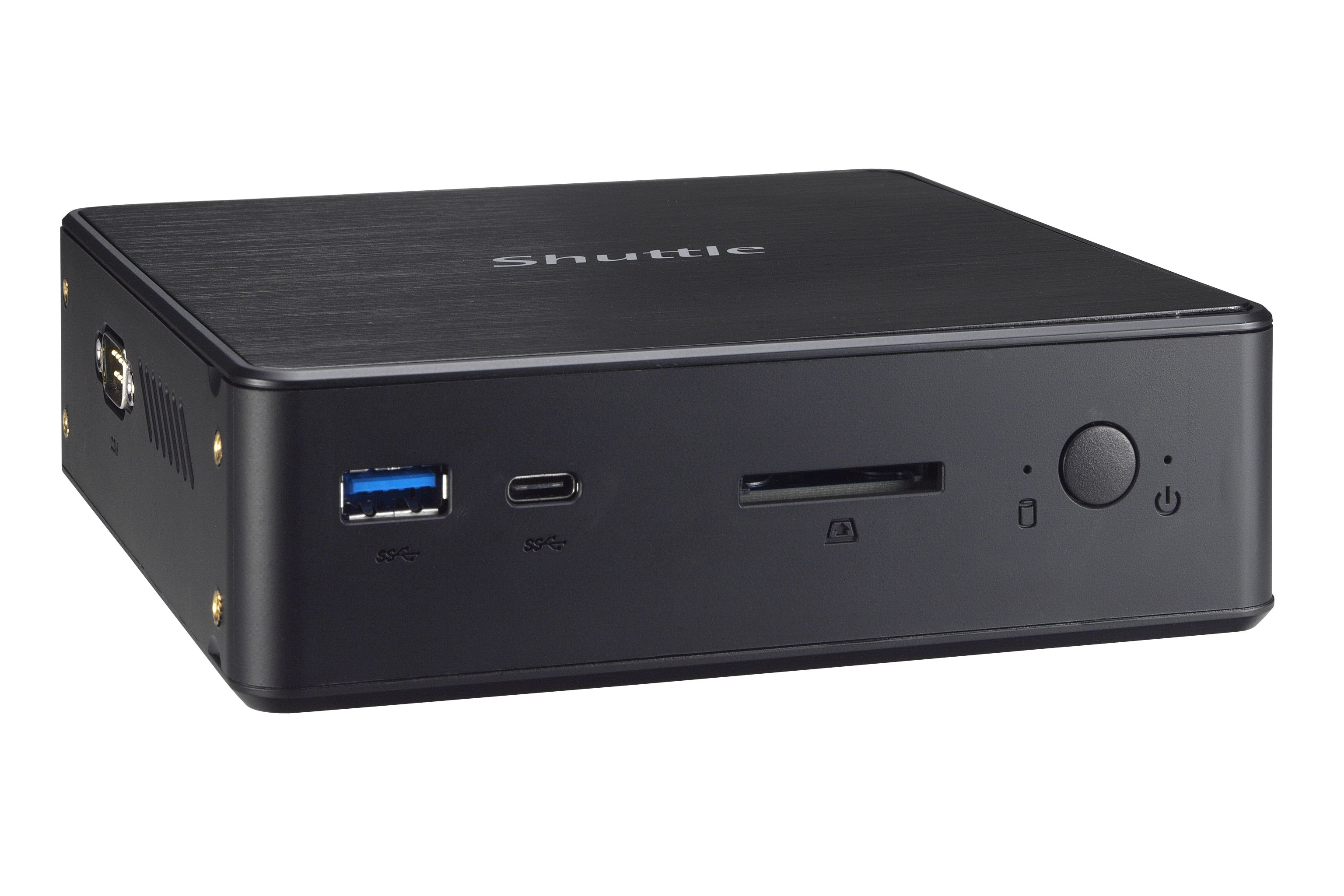 Shuttle Nano PC NC10U , Intel Celeron 4205U, 1x HDMI, 1x DP, 1x 2.5" bay, 1x M.2, 1x LAN, 1x COM, Wifi, 24/7 permanent operation, incl. VESA & StandIntel Celeron 4205U, 2 x So-DIMM DDR4 max 64GB, 2.5", M.2, Gigabit LAN, WLAN, SD, 65W