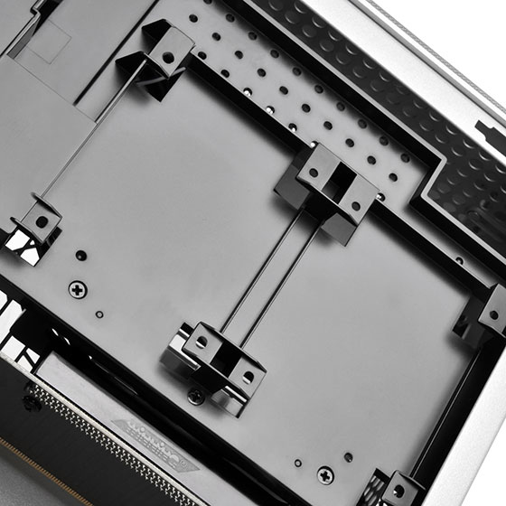 Classic exterior built from aluminum unibody frame Support cards up to 13 inches (330mm) to fit most high-end GPUs for compute power far exceeding consoles Mini-ITX motherboard & ATX PSU compatible for wide array of building possibilities Maximum performance in slim form factor with support for AIO liquid cooling Positive air pressure design for excellent cooling/quietness and dust-prevention Fits in nearly any environment with horizontal or vertical orientation Front USB module moved to left to avoid interference with ATX power supply and replaces space previously occupied by slim optical drive 3.5” drive slot above PSU bracket is no longer available due to increased height of ATX PSU. An additional 2.5” drive can be mounted in place of a slim optical drive. |