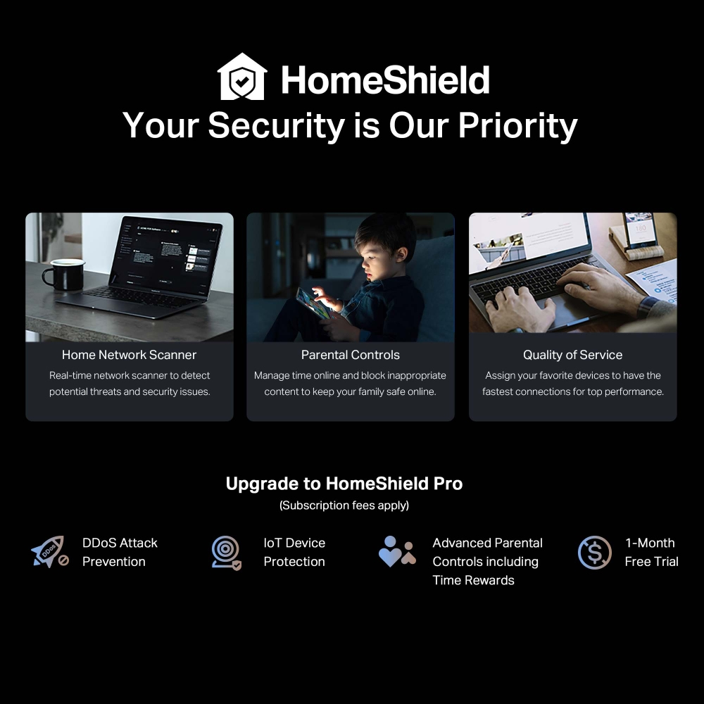 Redefining Wi-Fi Routers BE9300 Tri-Band Wi-Fi 7 Router - Tri-Band WiFi 7 Speeds up to 9214 Mbps - Five 2.5G Ports - Enhanced Security with HomeShield - Powerful CPU |