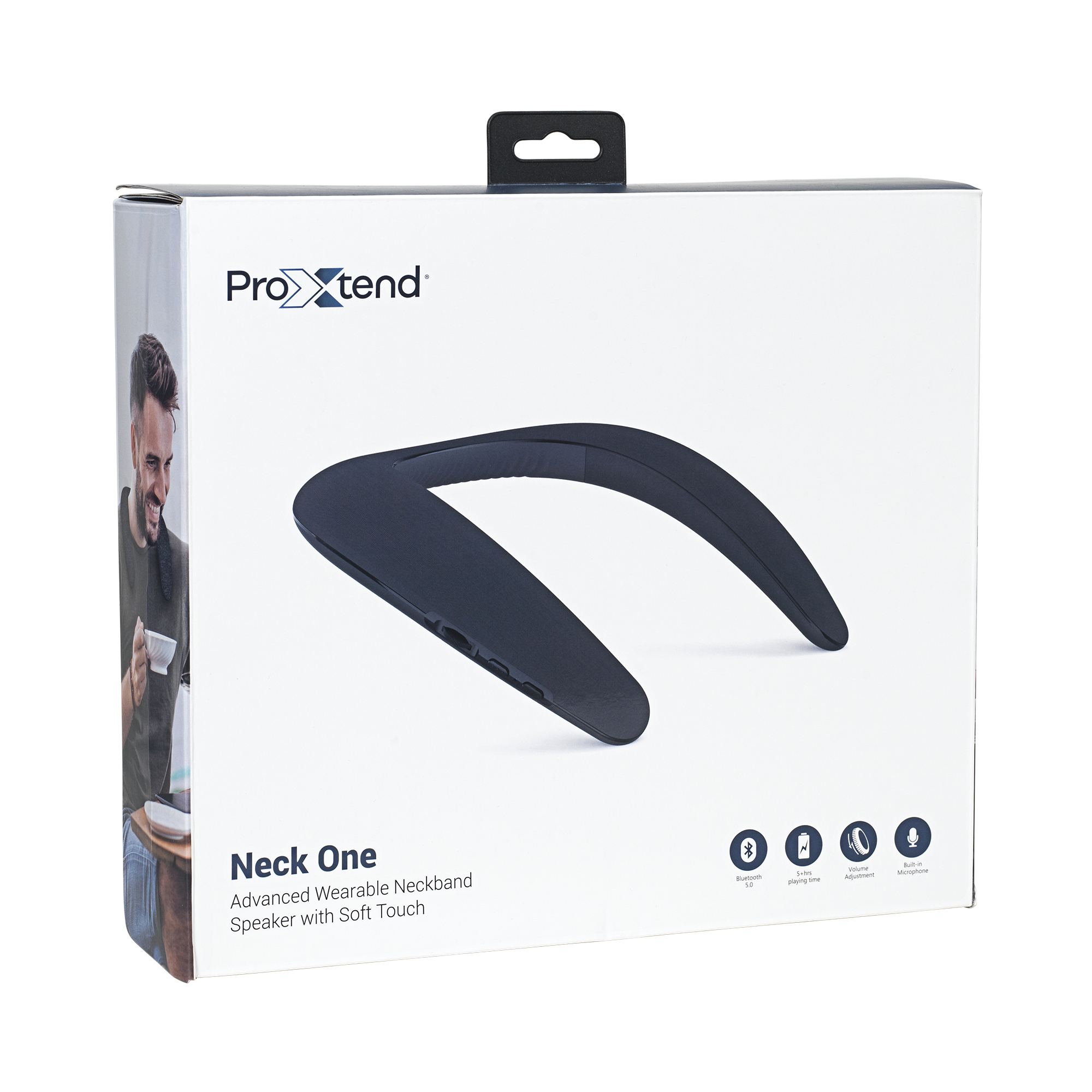 With its lightweight design, the ProXtend Neck One bluetooth speaker allows you to fully immerse yourself into conversations, music or gameplay while comfortably resting on your shoulders for up to 11 hours at a time. |